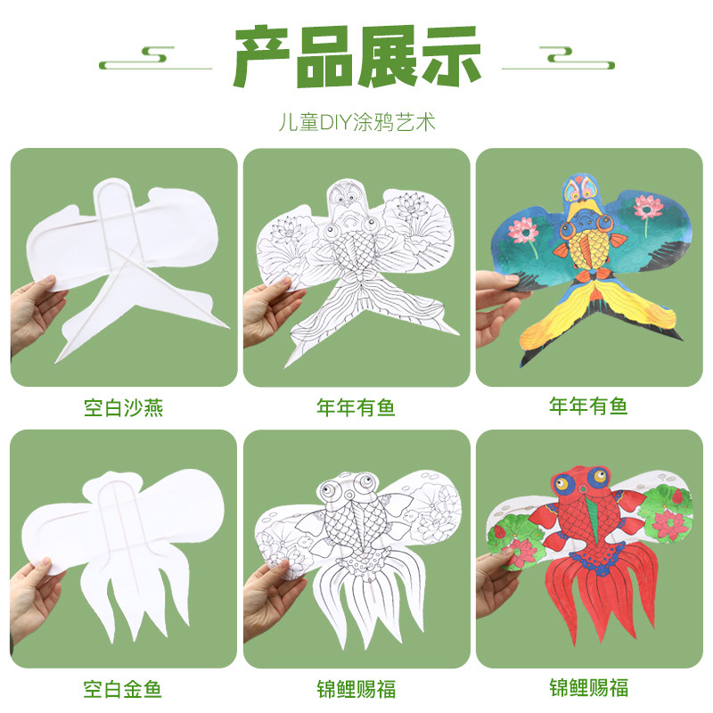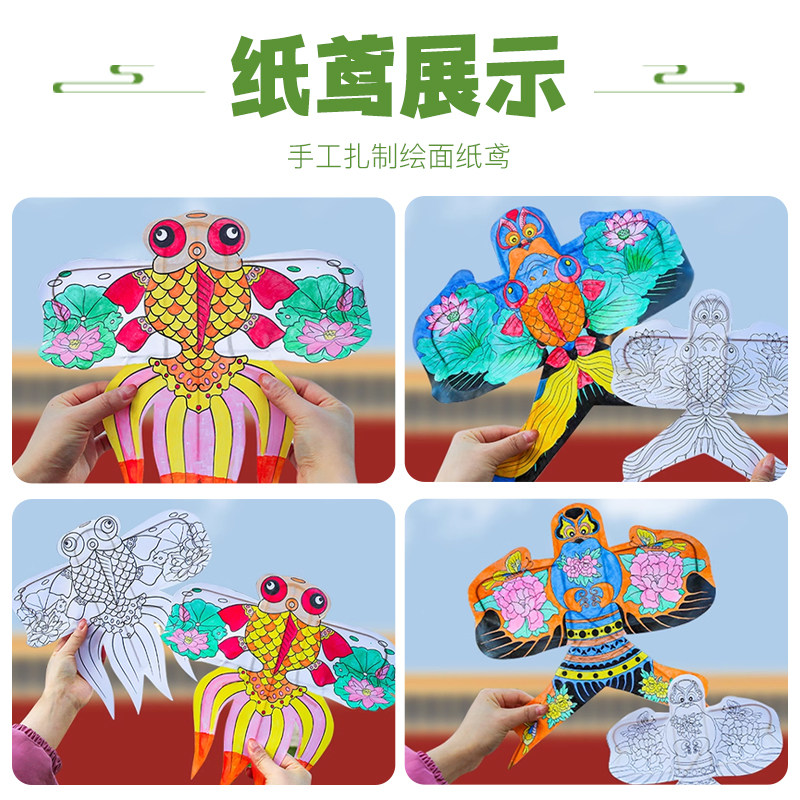 📚 儿童手绘风筝diy材料包手工自制空白填色风筝纸鸢竹子摆件道具