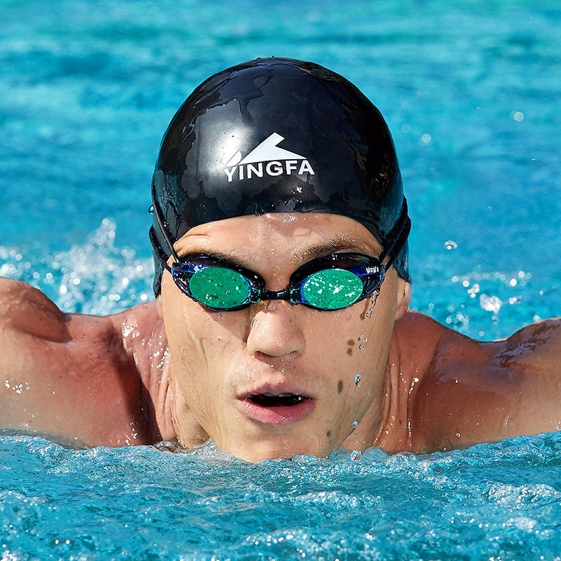 📚 英发成人儿童钢盔泳帽快速游泳帽帽边加厚竞速款硅胶专业比赛训练