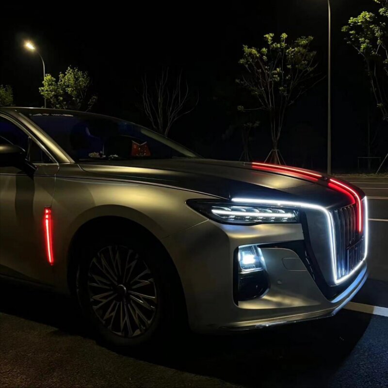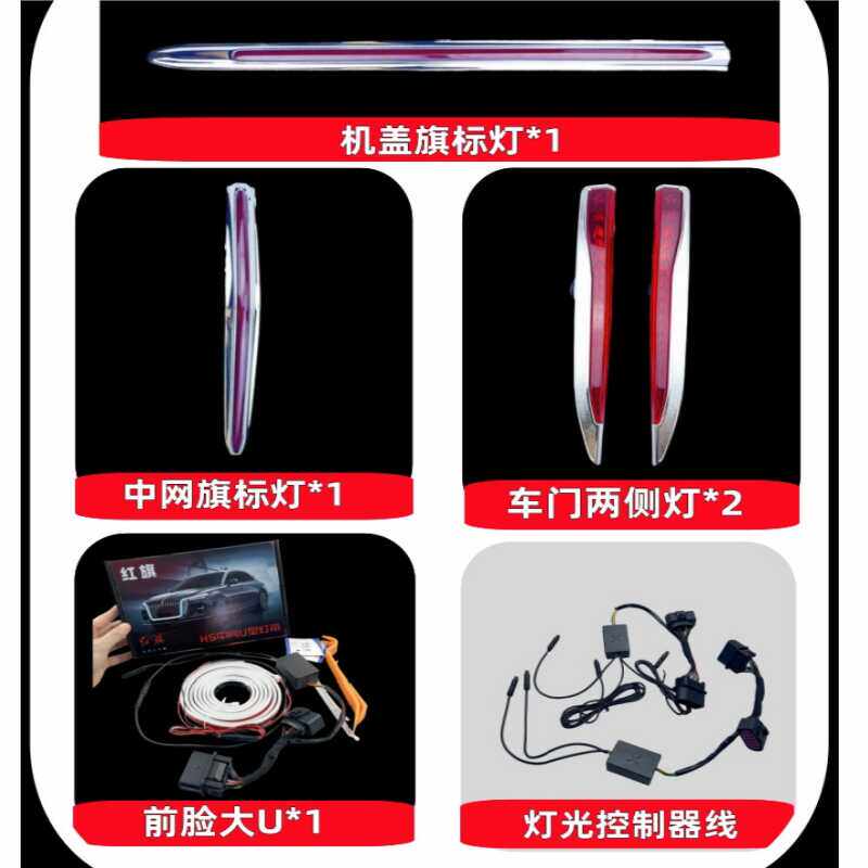 📚 适用于23 24款红旗H5改装大U型流光灯旗标灯中网机盖发光灯五件套