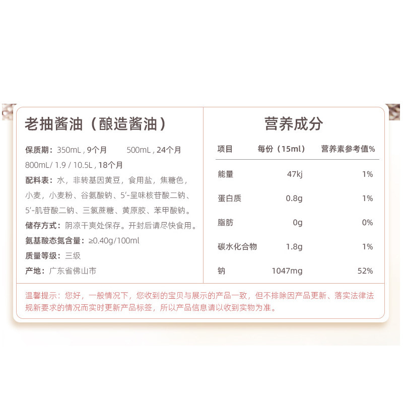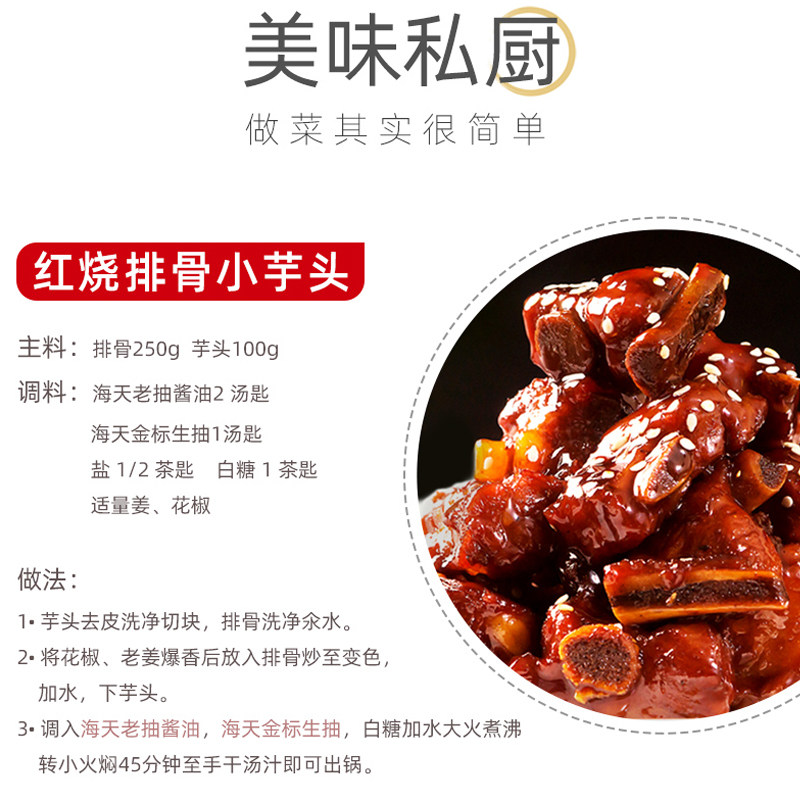 08¥ CZ001 jThwUPb9A0g¥ https://m.tb.cn/h.7ujm2jm 海天老抽酱油350ml袋装家用酿造酱油炒菜红烧肉卤味上色调料 --------------------- 【原售价】6.5元 【现售价】3.6元。