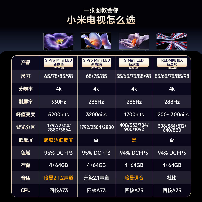 📚 【新品】小米电视S MiniLED 75英寸低反屏704分区288Hz高刷电视机