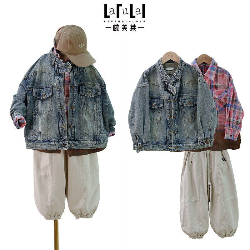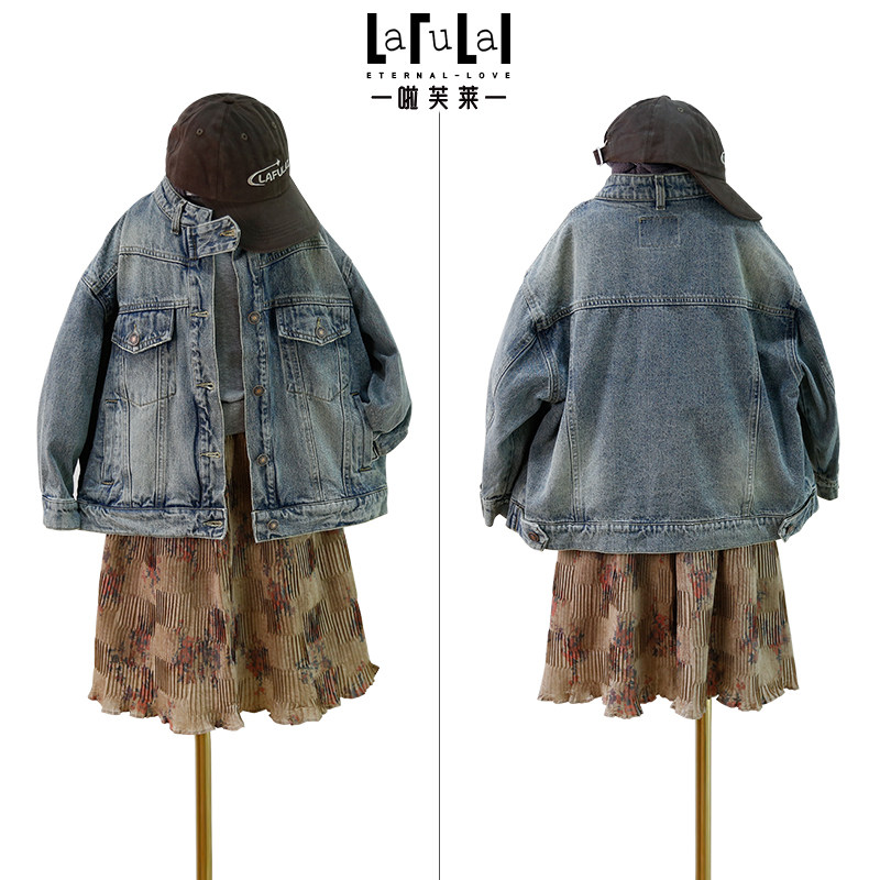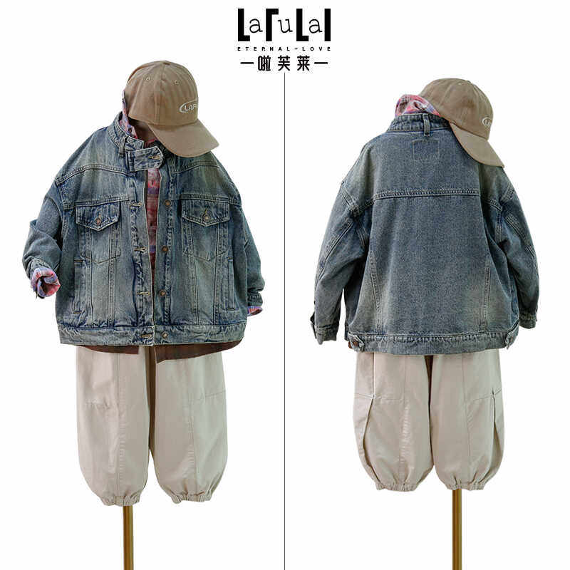 📚 啦芙莱童装2024秋季新款男女儿童牛仔衣潮宝机车服外套洋气帅9322
