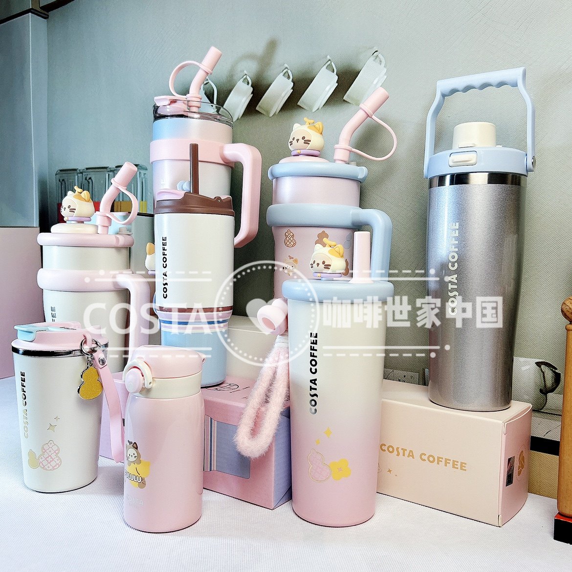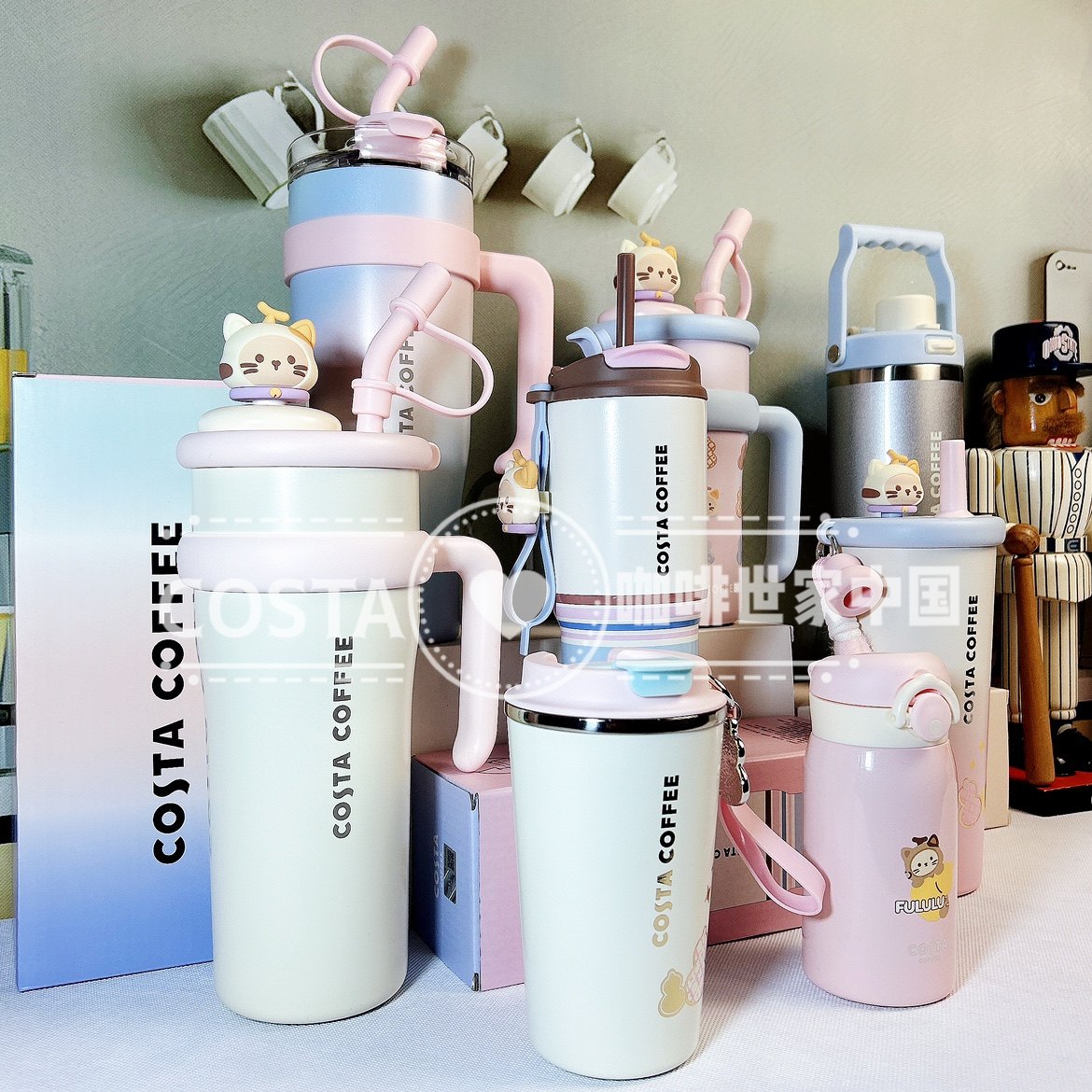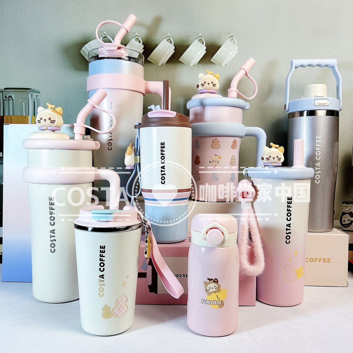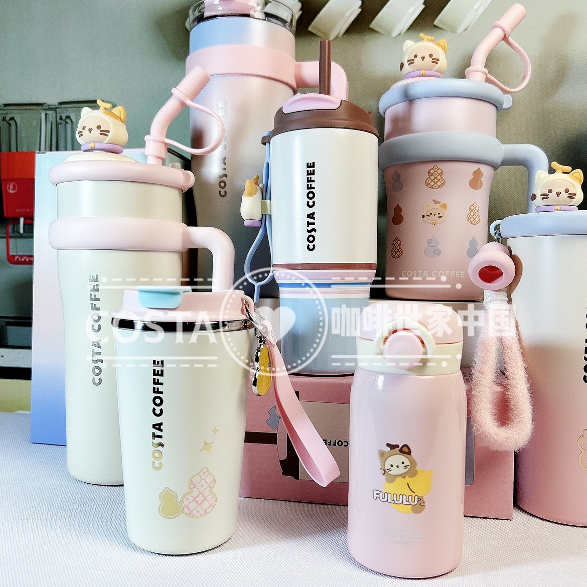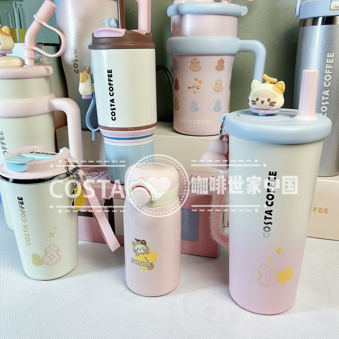 📚 Costa享福猫卡通保温杯女生高颜值大容量冰霸水杯巨无霸吸管杯子