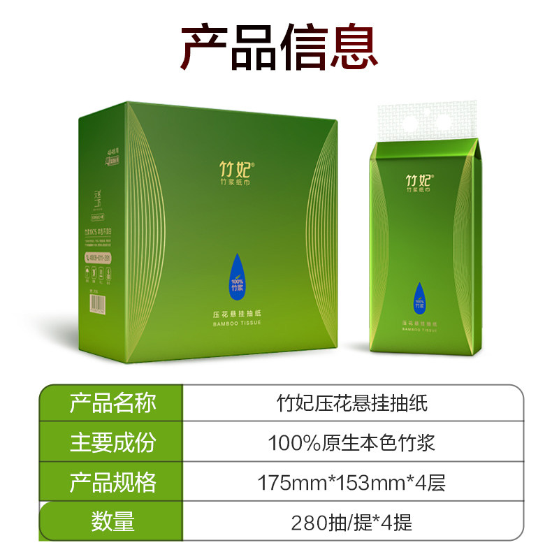 🎁产品介绍:这款竹妃竹纤维悬挂抽纸共有4层压花设计,每箱有280抽,每提都是满满的惊喜!🎁券后价更是低至29.9元,简直太划算了!