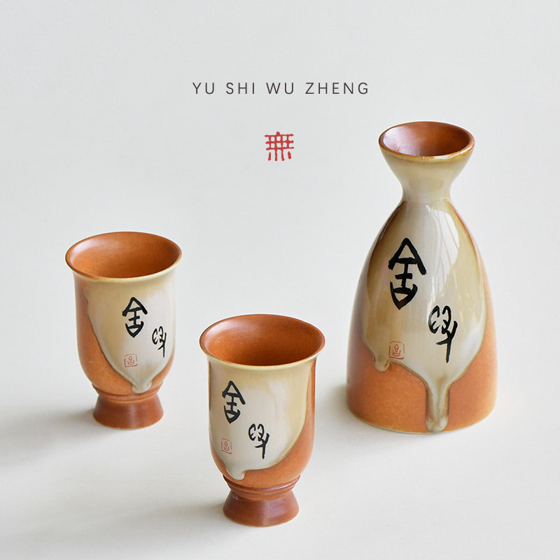 📚 闽越复古陶瓷创意小酒具甲骨文舍得温酒壶白酒杯分酒器三件套酒器