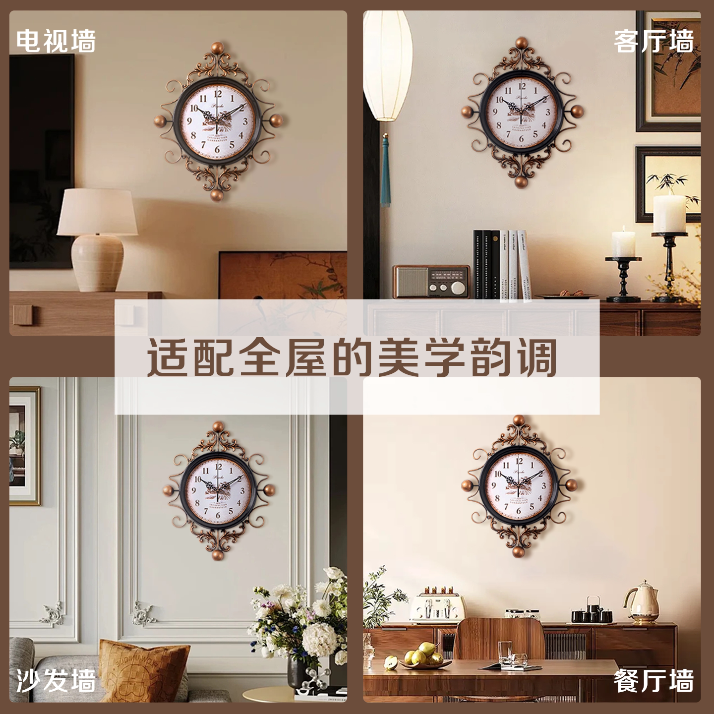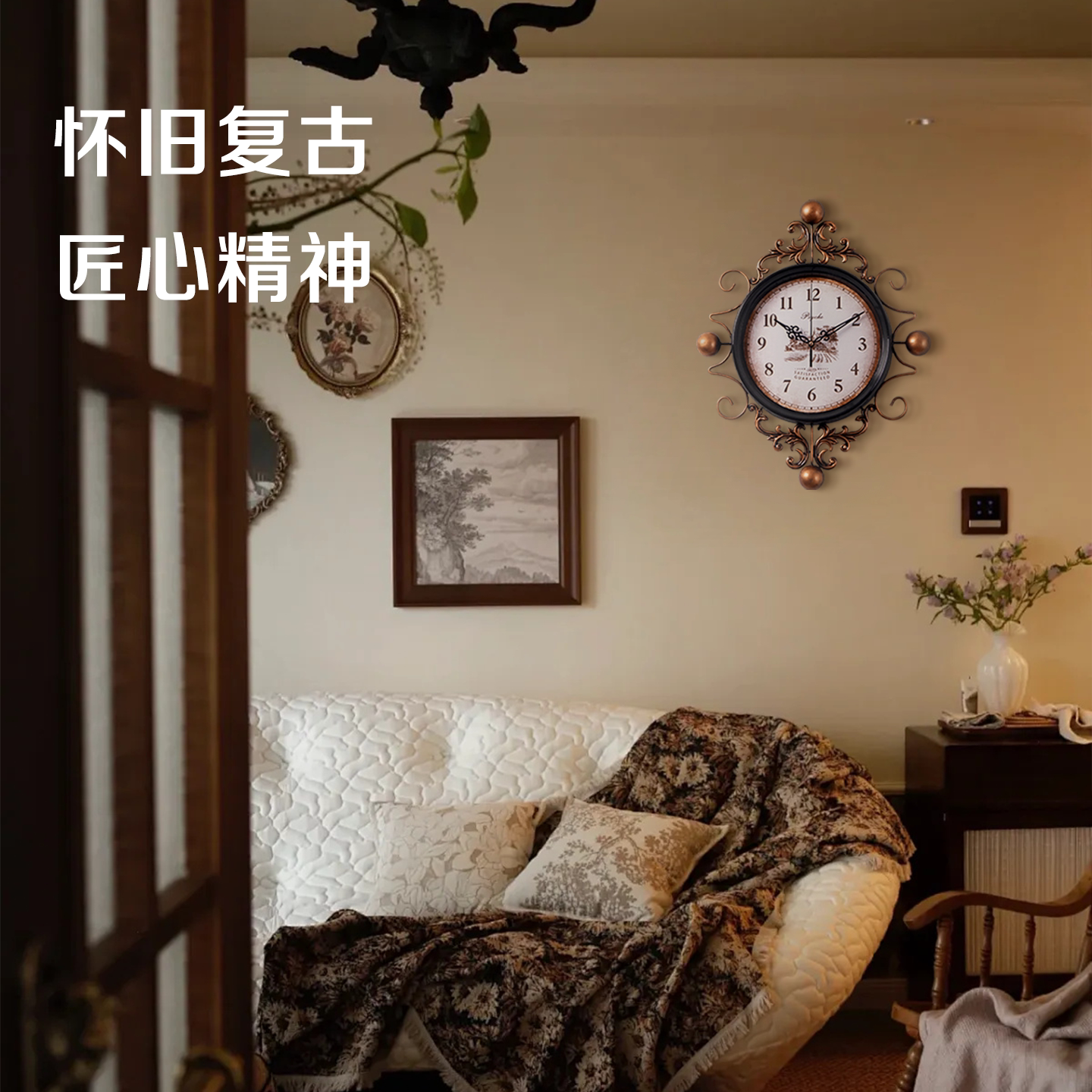📚 普赛克中古风挂钟2026新款客厅时钟家用静音法式复古装饰挂钟表