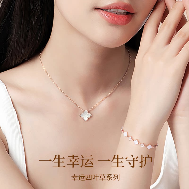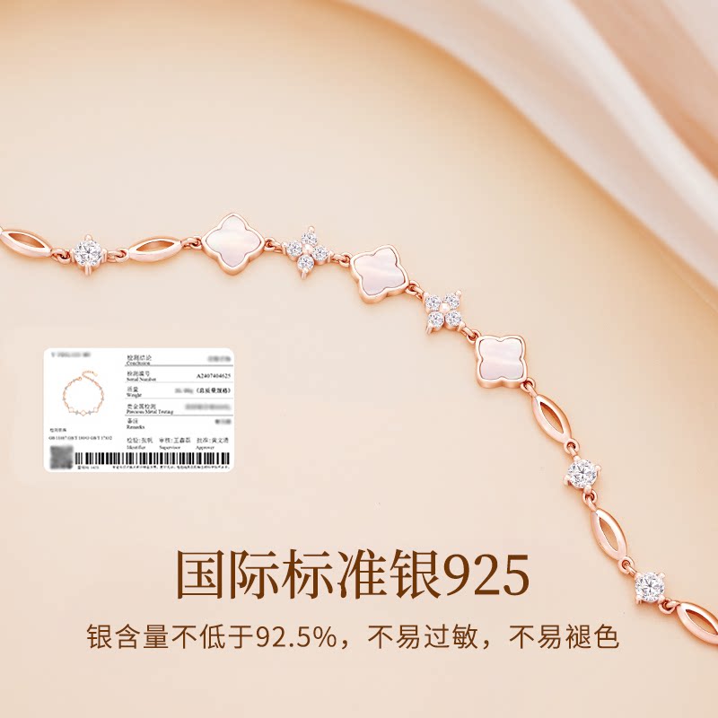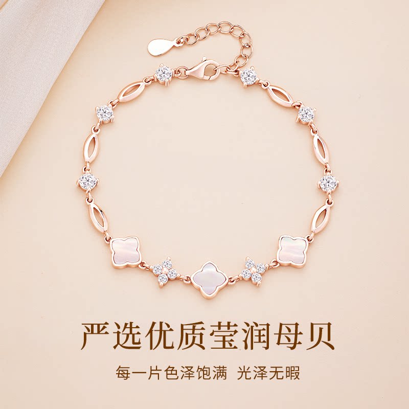 📚 中国黄金央创四叶草手链女款轻奢小众精致手镯女生生日礼物S925