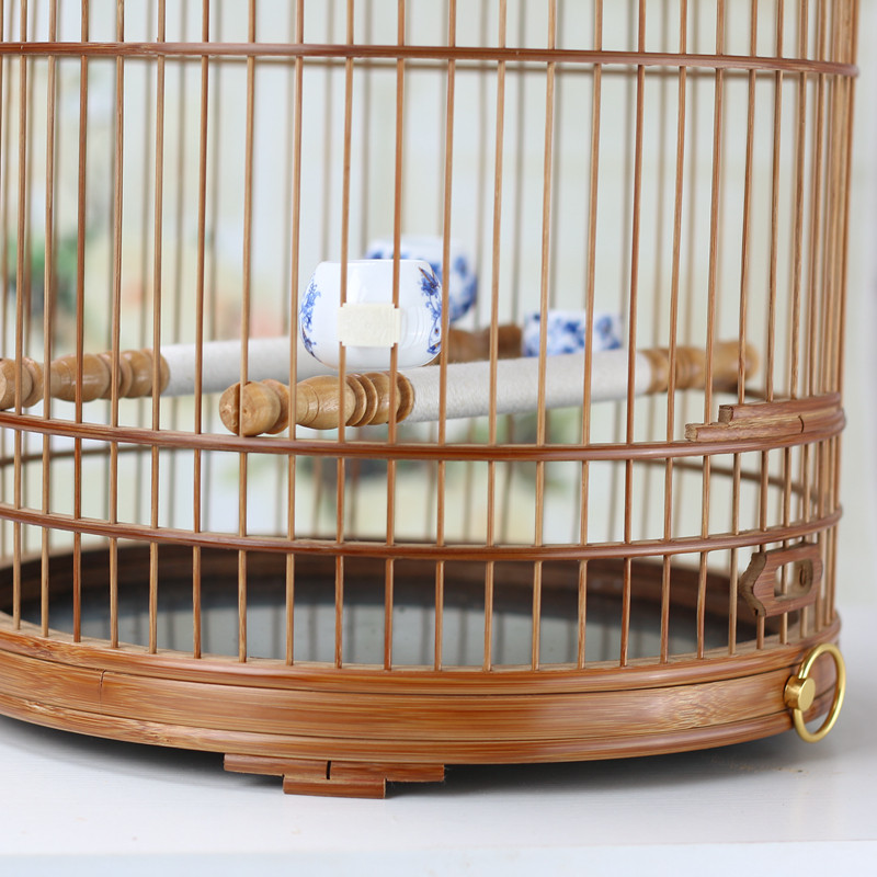 📚 绣眼黄鸟文鸟玉鸟柳莺竹鸟笼抽屉活底紫竹老竹竹皮抛光红子竹鸟笼