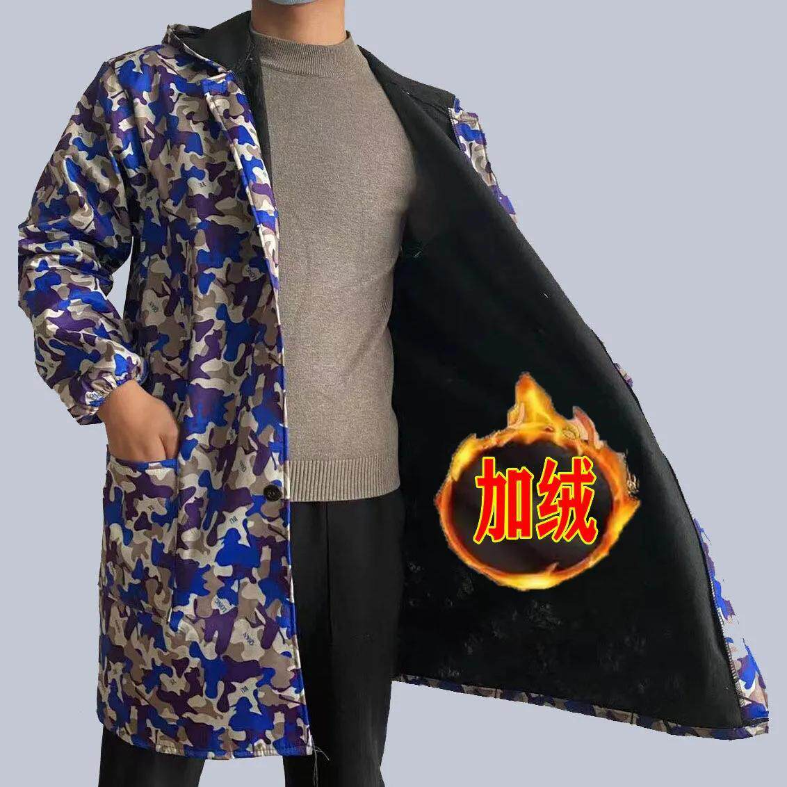 📚 加绒加厚罩衣防水防油男款围裙工作服女干活带帽冬季外穿女中长款