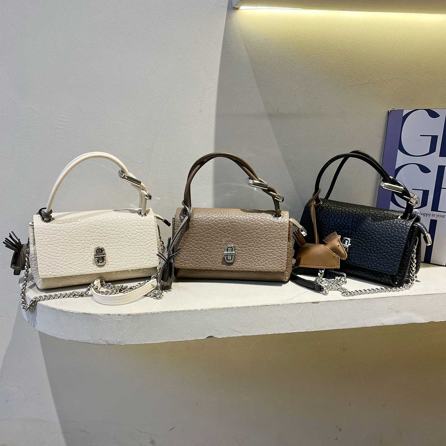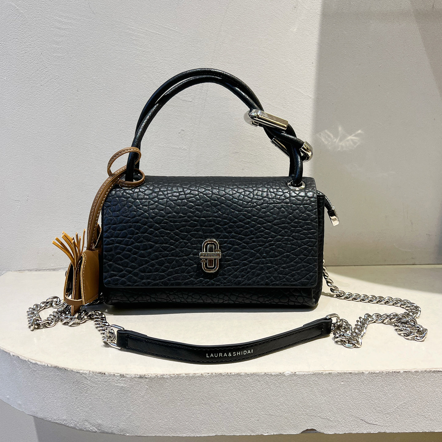 📚 劳拉时黛荔枝纹锁扣手提小方包链条斜挎包包女2025新款时尚单肩包