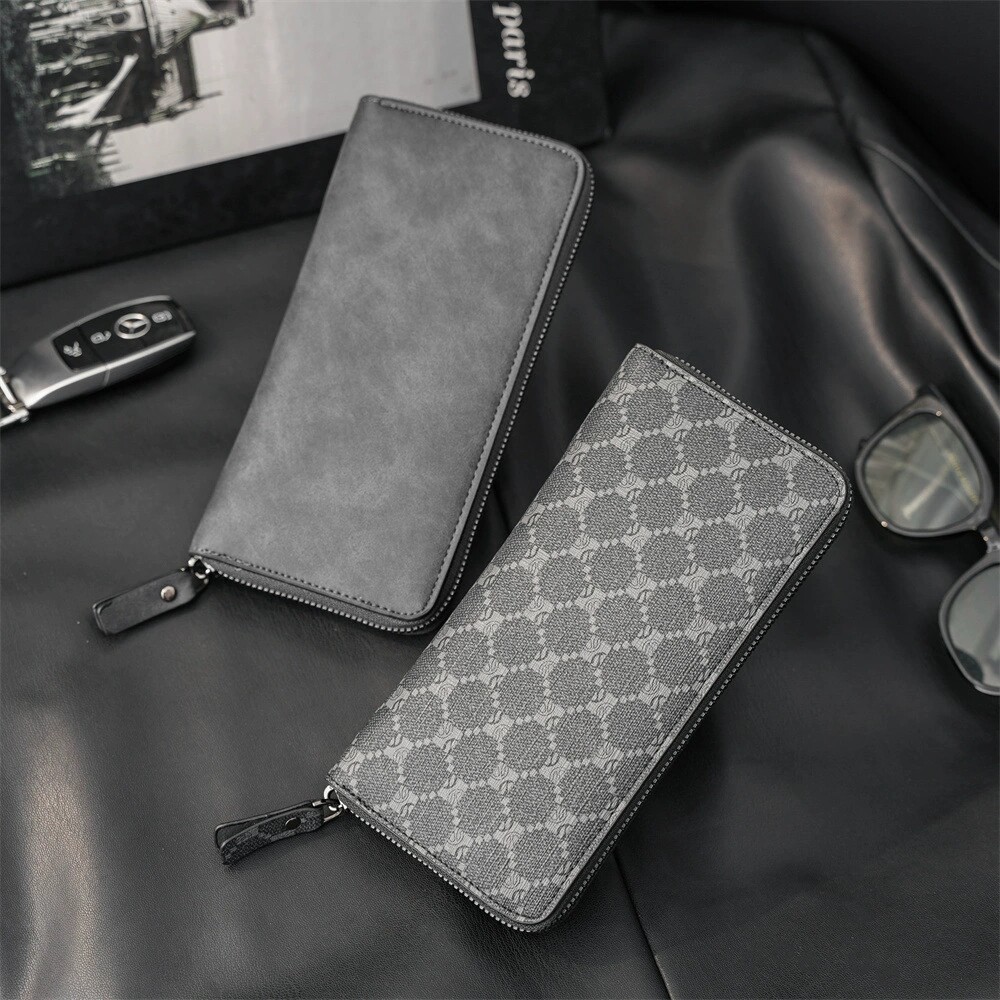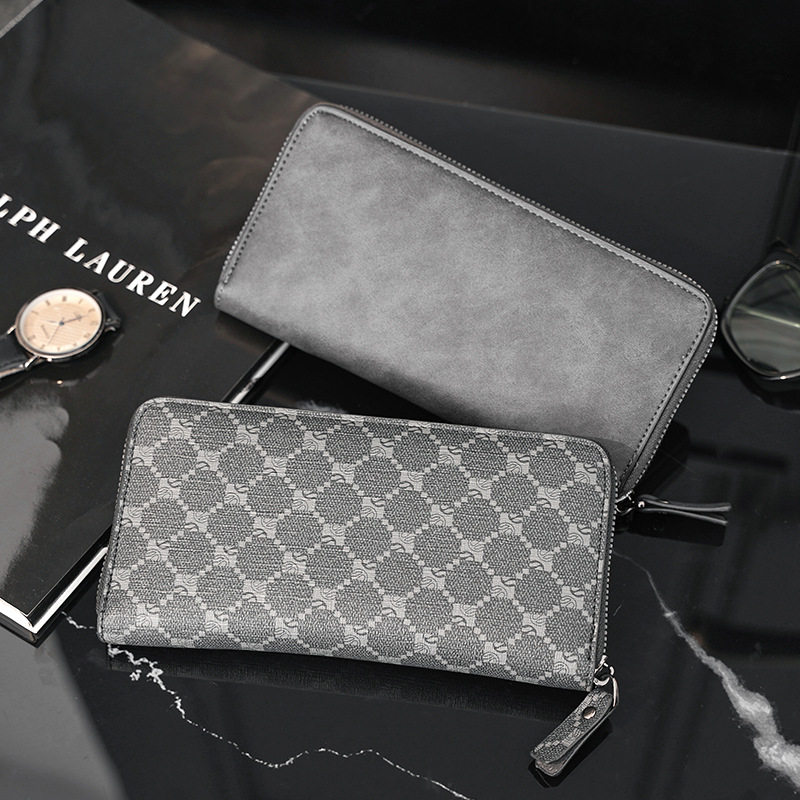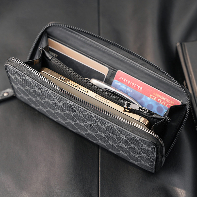 📚 钱包男长款拉链真皮质感卡位可放手机耐用青年时尚格子商务手拿包