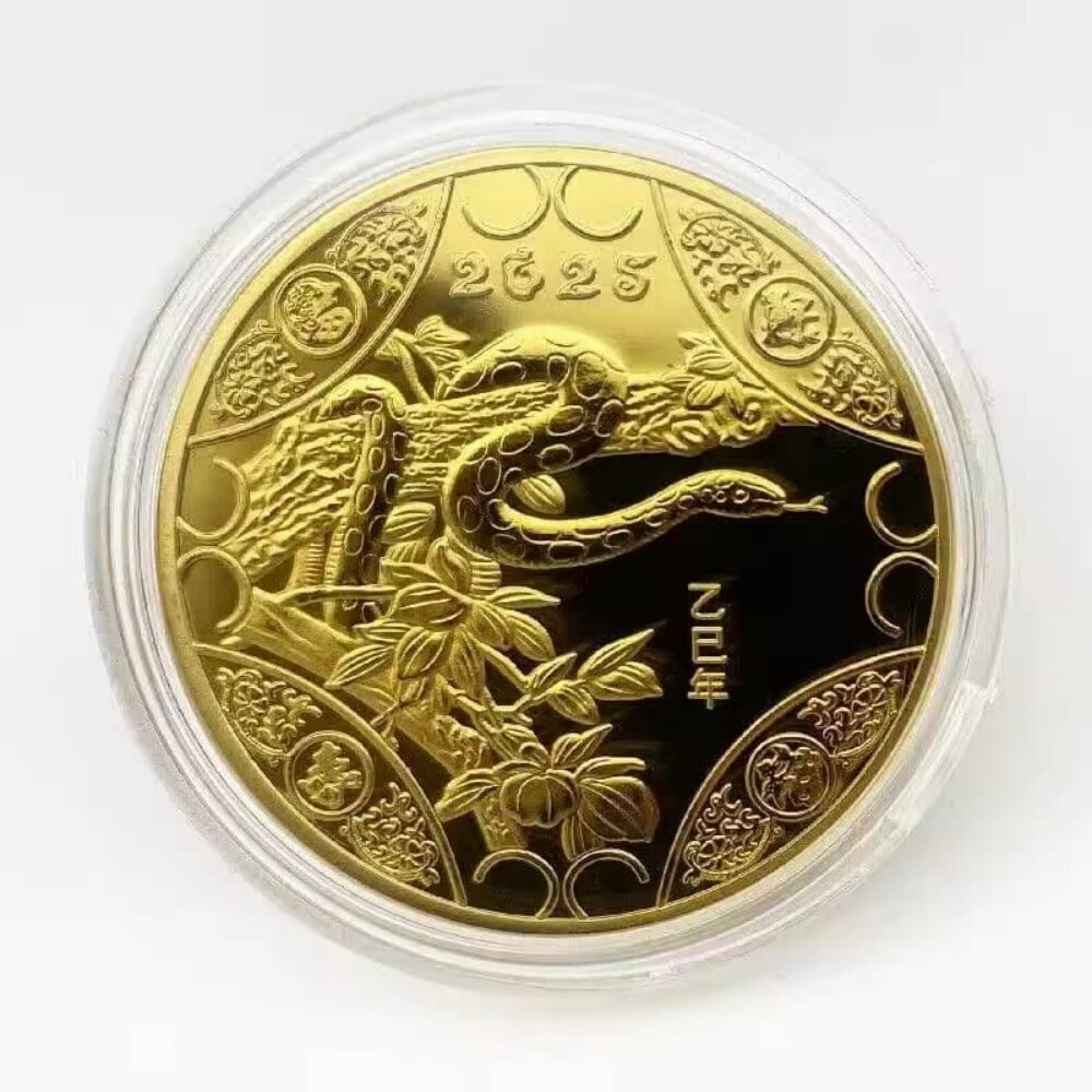 📚 中国2025蛇年纪念币生肖金色礼物金币送礼物人立体幸运浮雕纪念章