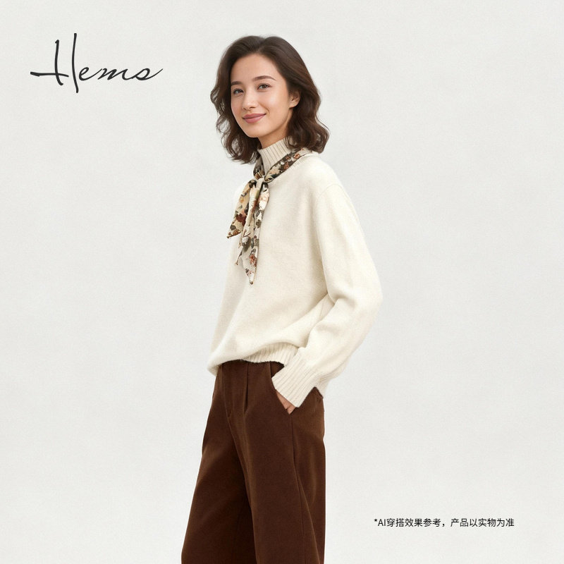📚 海尔曼斯25秋冬新品通勤休闲松弛感半高领云感亲肤羊毛衫D3905D41