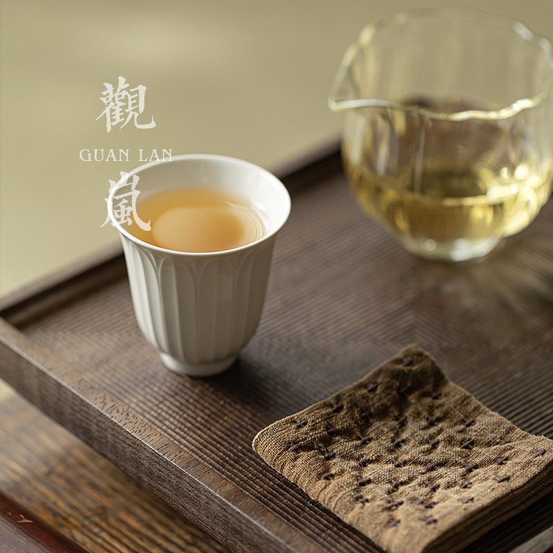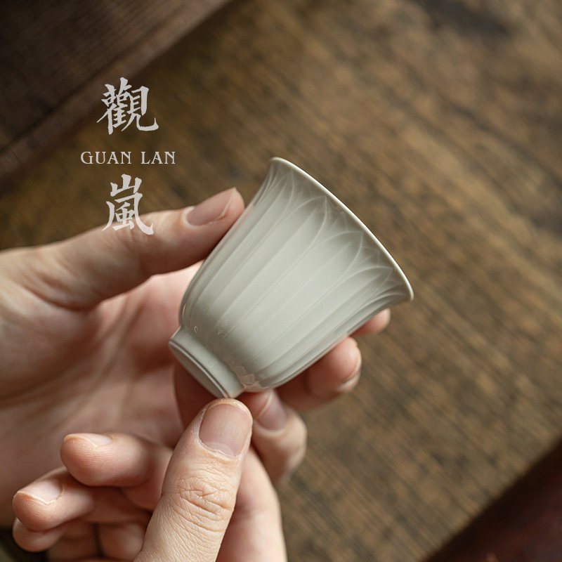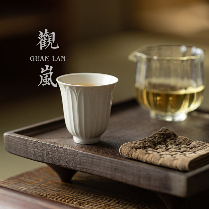 📚 观岚定窑白中式莲瓣纹茶杯功夫茶具品茗杯个人专用陶瓷主人杯单杯