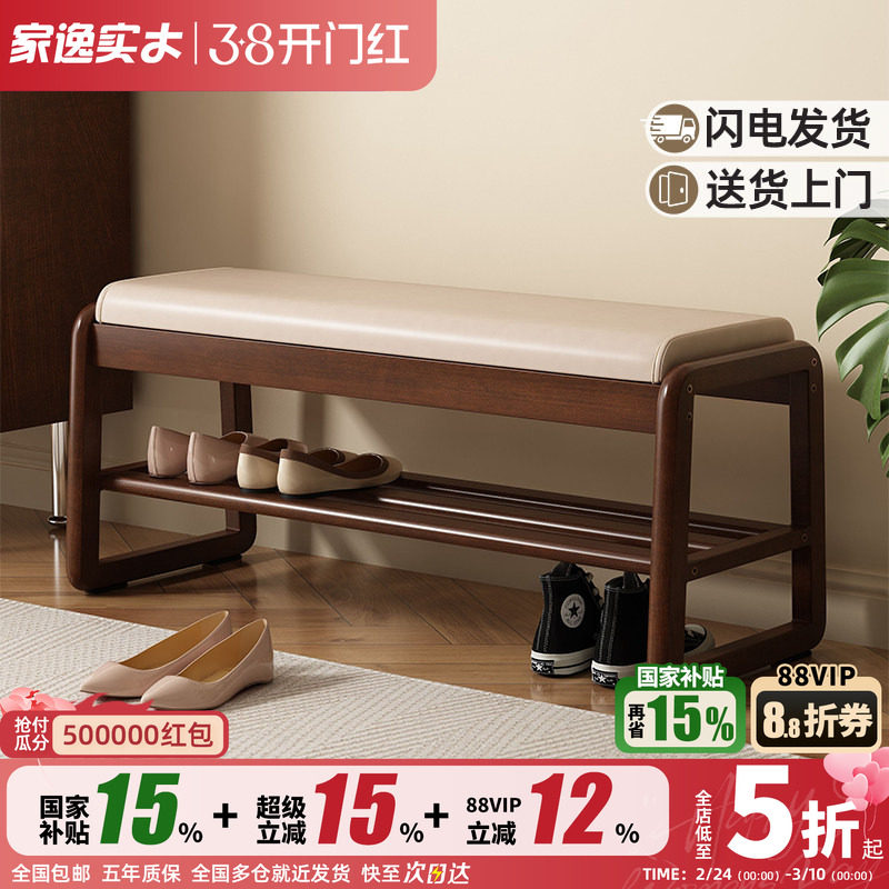 📚 家逸实木换鞋凳家用入户穿鞋凳鞋柜坐凳一体鞋架进门口可坐凳子