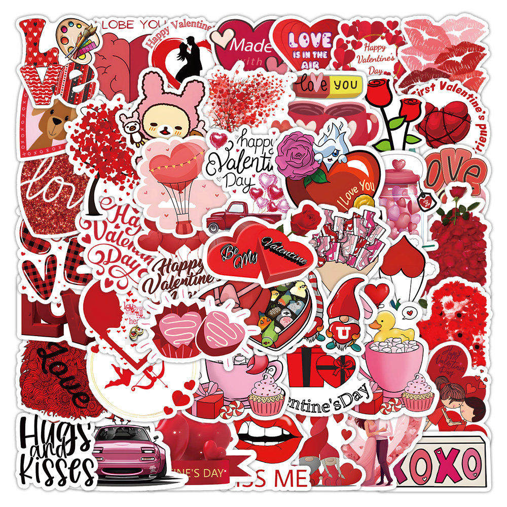 📚 450张情人节贴纸浪漫红色卡通小图案装饰diy手作玻璃门礼品礼物贴