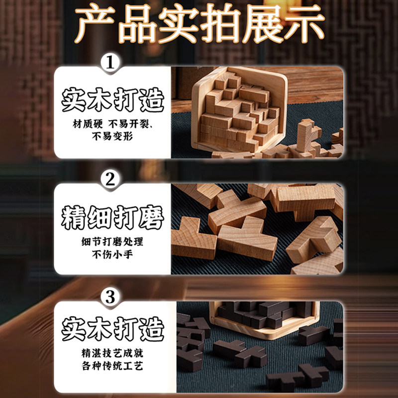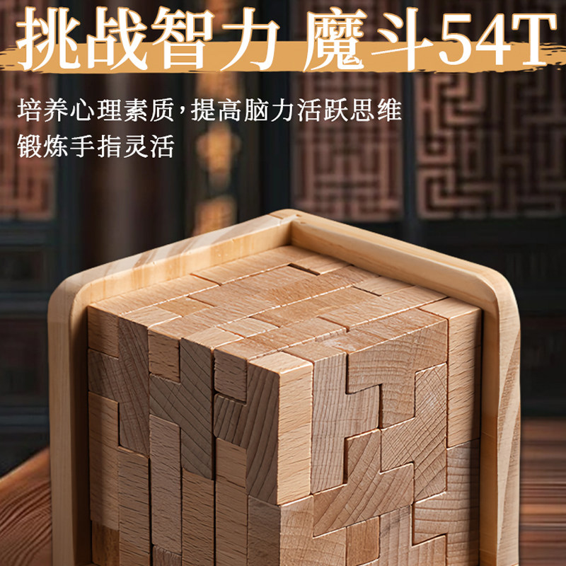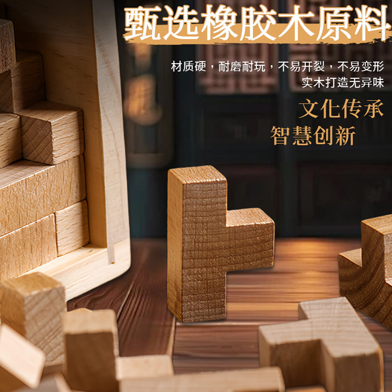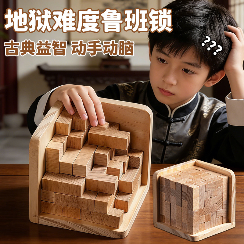 📚 十级地狱级难度玩具鲁班锁10岁以上8魔斗九连环解锁榉木儿童积木5