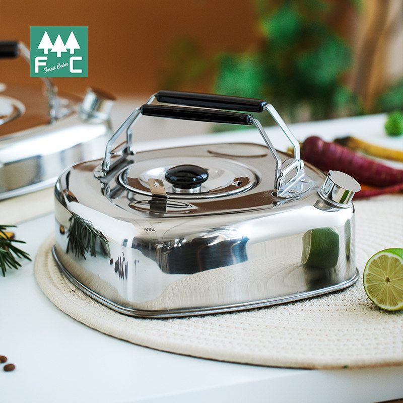 📚 日本制杉山金属不锈钢户外烧水壶露营便携方形扁可叠放带漏网煮茶