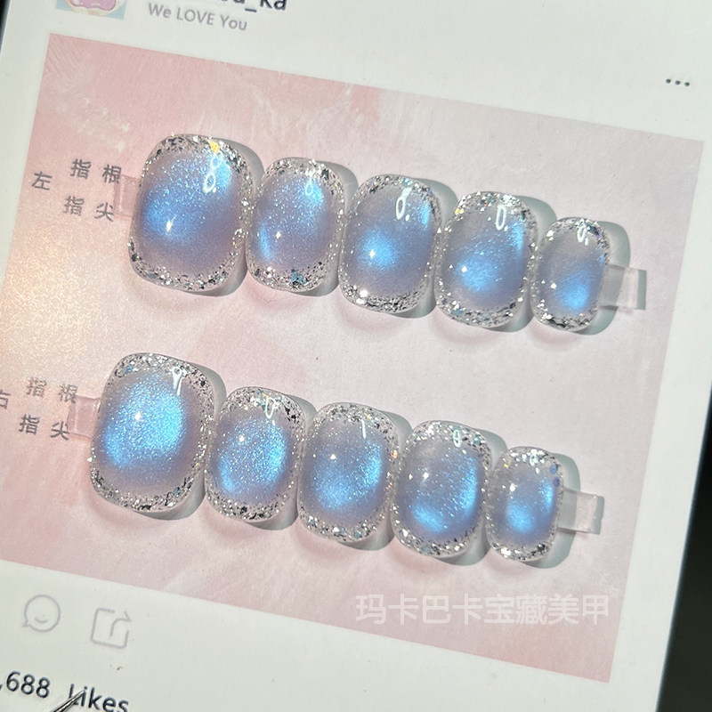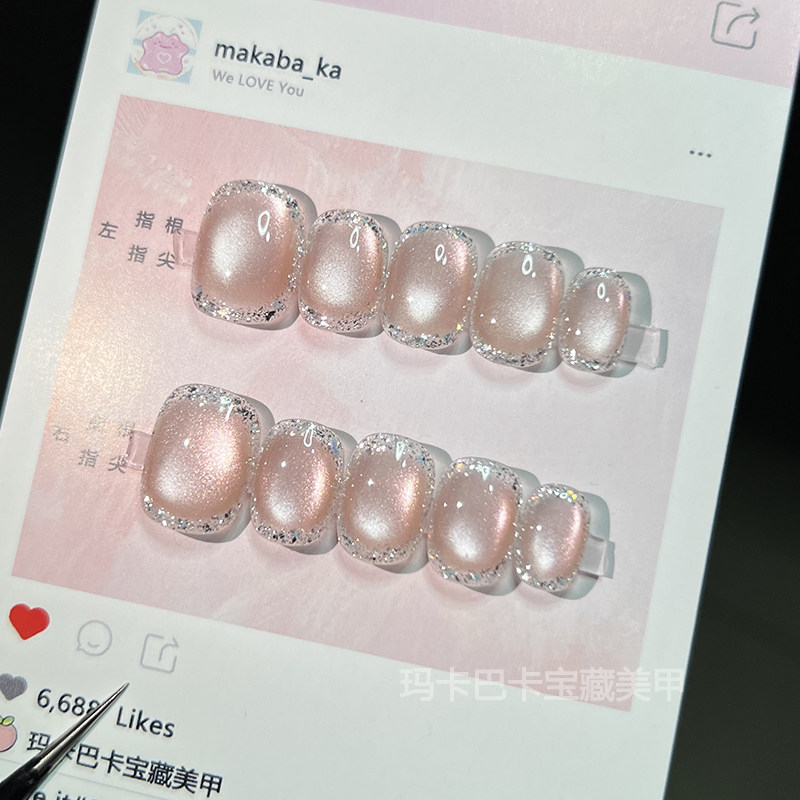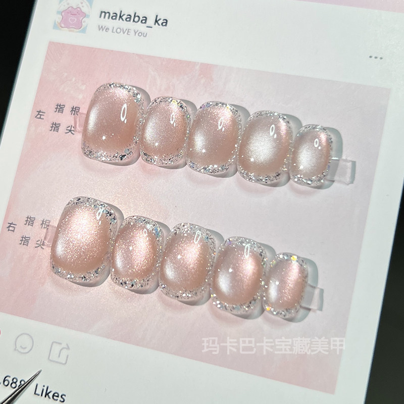 📚 草莓晶】玛卡巴卡手工穿戴甲粉宝石猫眼温柔显白美甲贴片短指甲