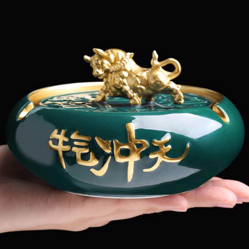 📚 高档天气防冲坊灰烟灰缸家用飞言中式牛尚带盖防灰尘烟灰缸烟灰缸