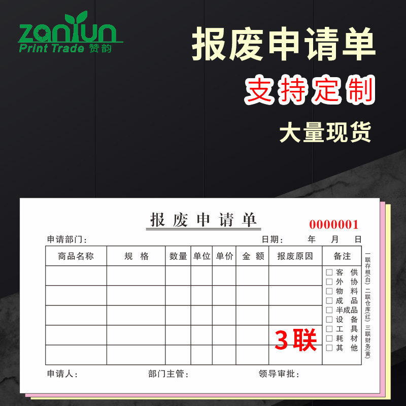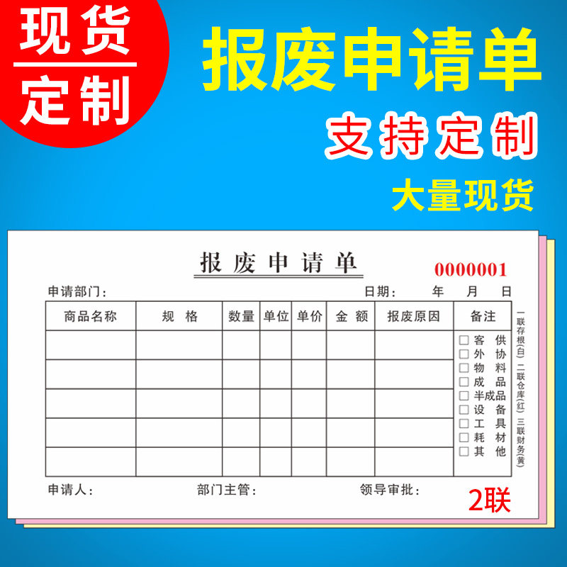 📚 【报废申请单】3联物料三联部门车间申购工厂施工材料二连2联单废料零件配件生产复写手写多栏定制订做请购本