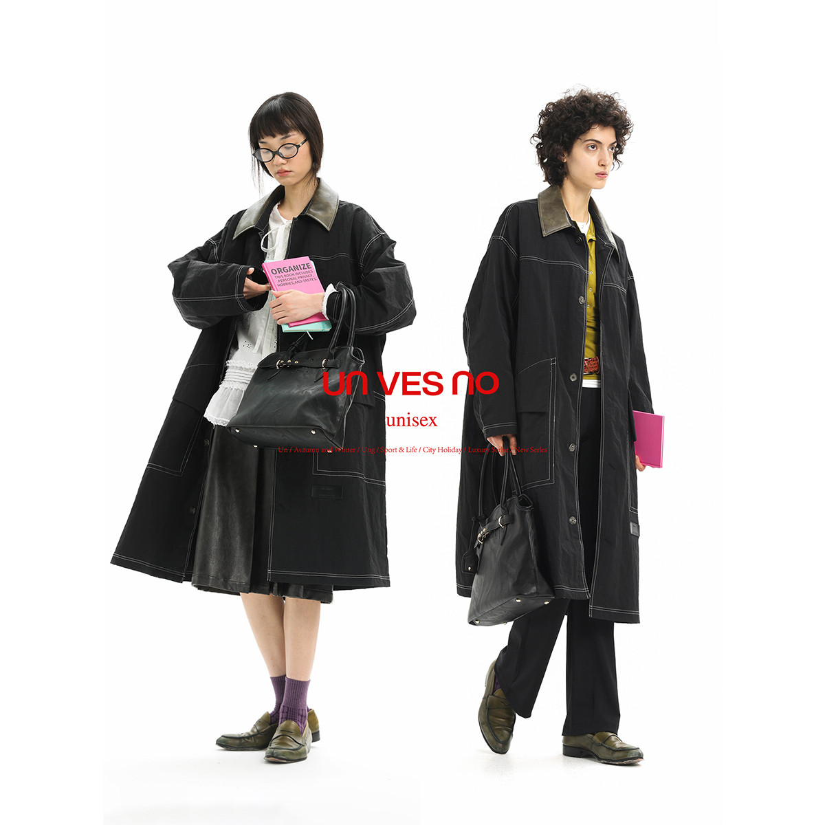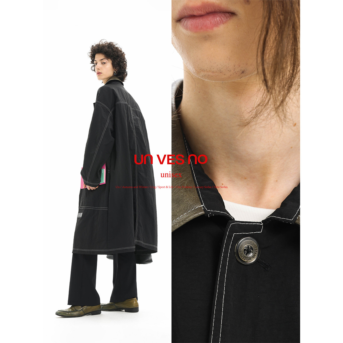📚 【防风速干面料】Unvesno(UN) 海明威褶皱极简皮领防泼水风衣外套