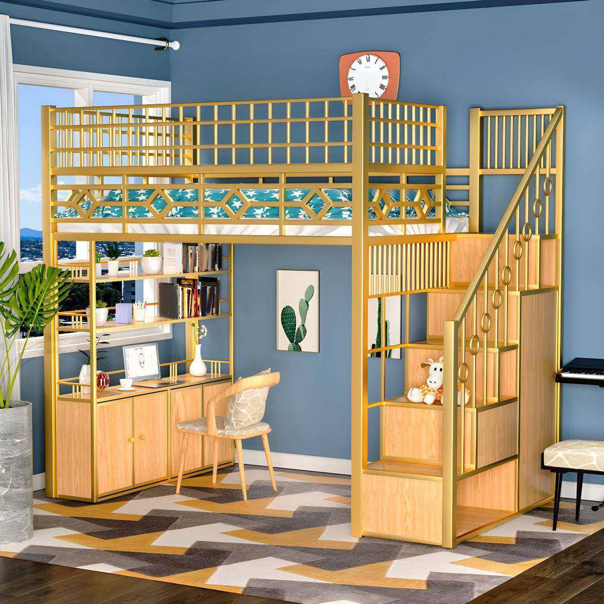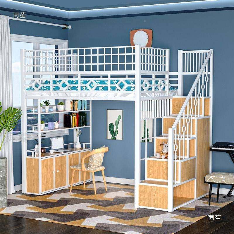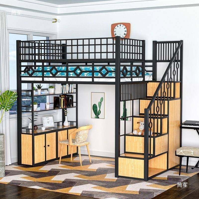 📚 桌复式二阁楼上下层床lof381t高架床带书柜书架下空书多功能单上