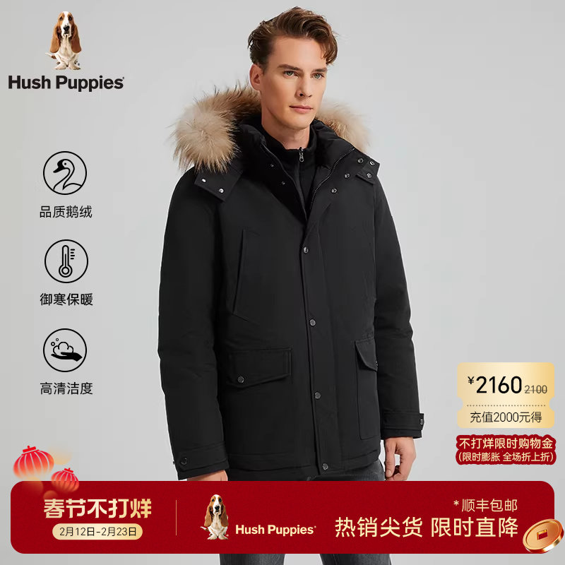 📚 【御寒机能鹅绒】暇步士男装冬季防风厚实派克服大毛领连帽羽绒服