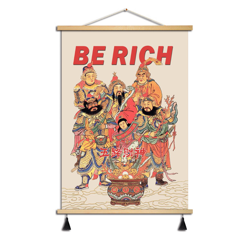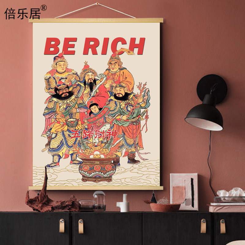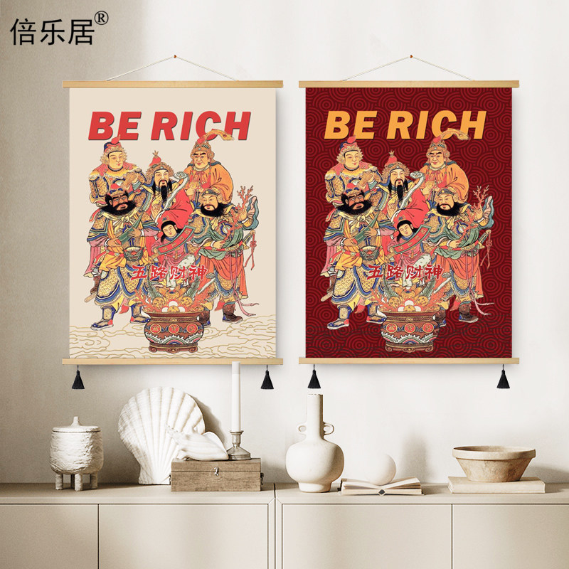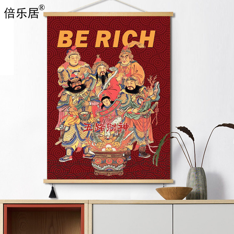 📚 国潮新中式五路财神爷装饰画新年年画墙面布艺电表箱装饰遮挡挂画