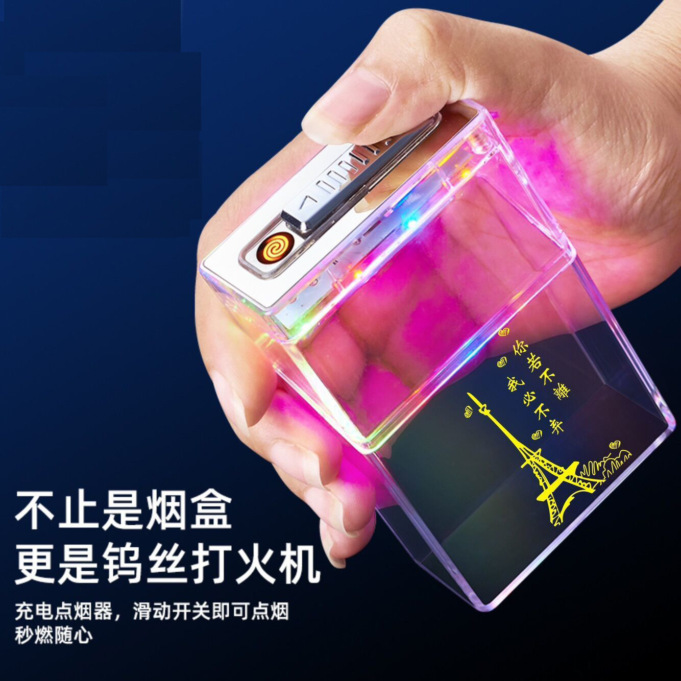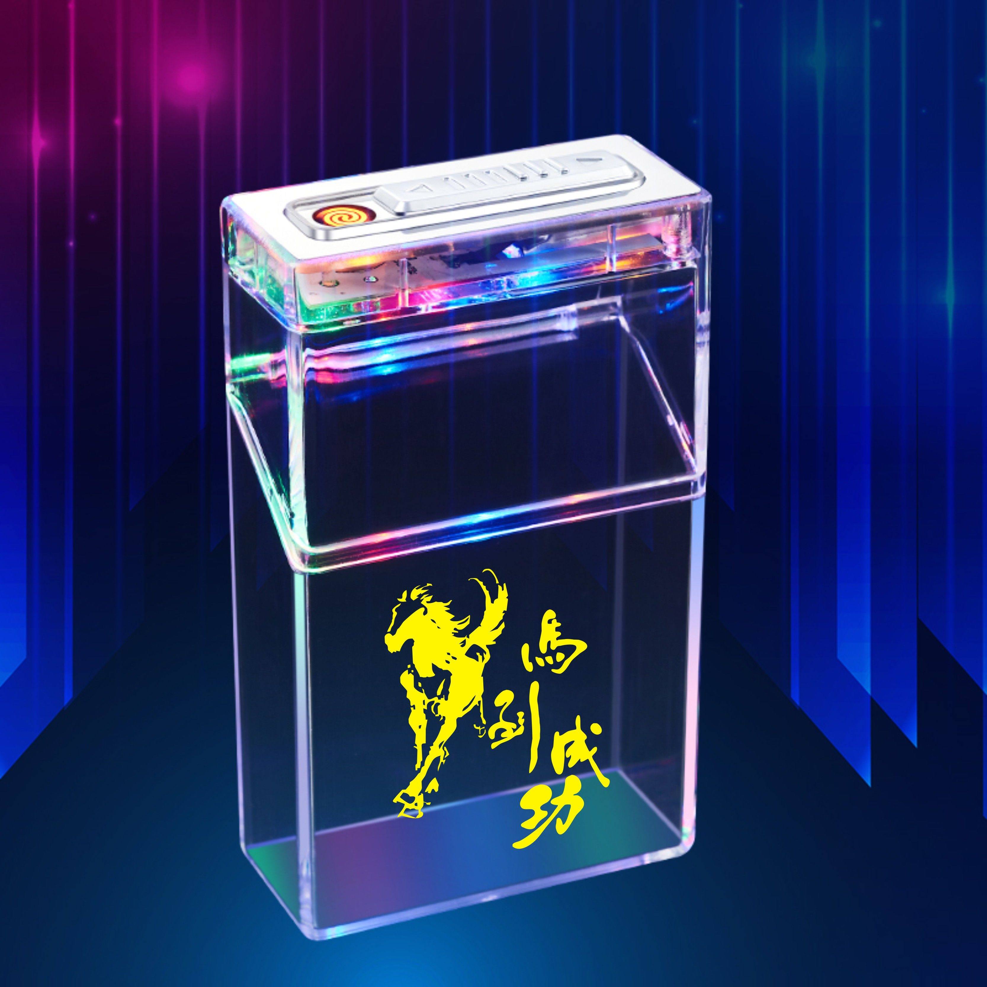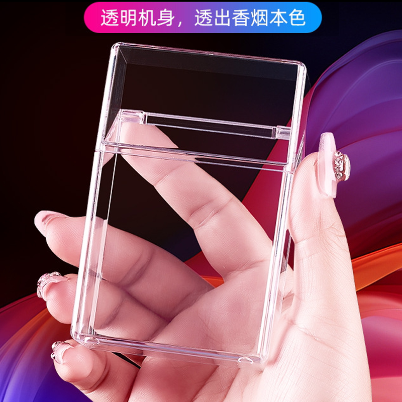 📚 充电打火机烟盒空烟夹粗支20支装男便携塑料透明香烟保护盒点烟器