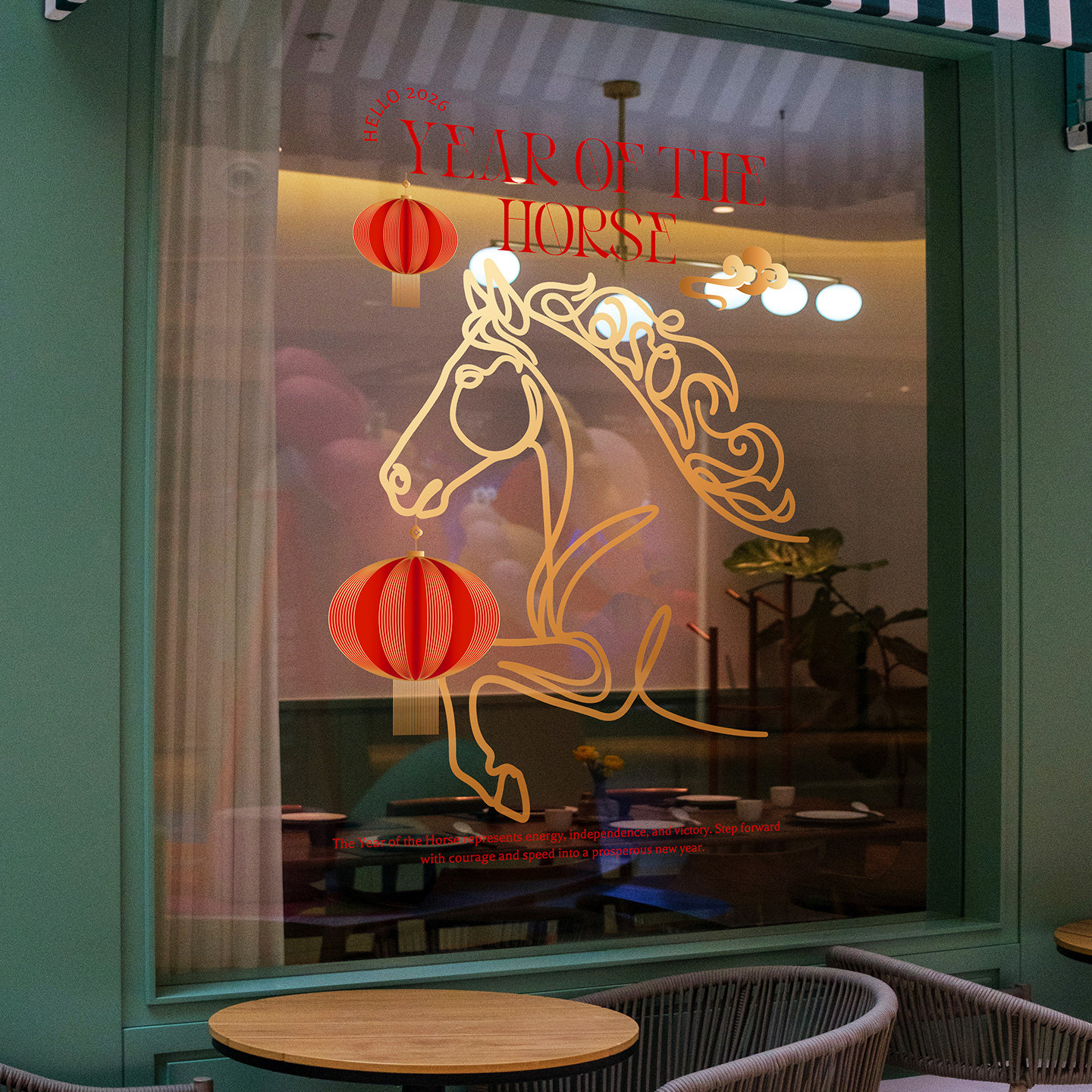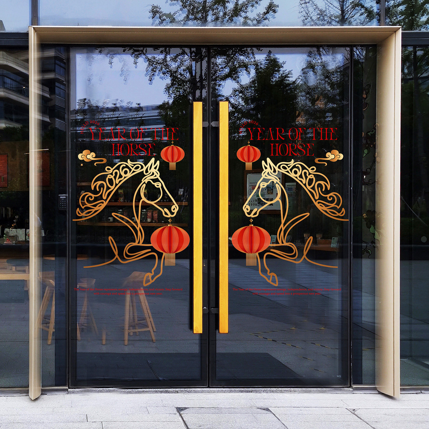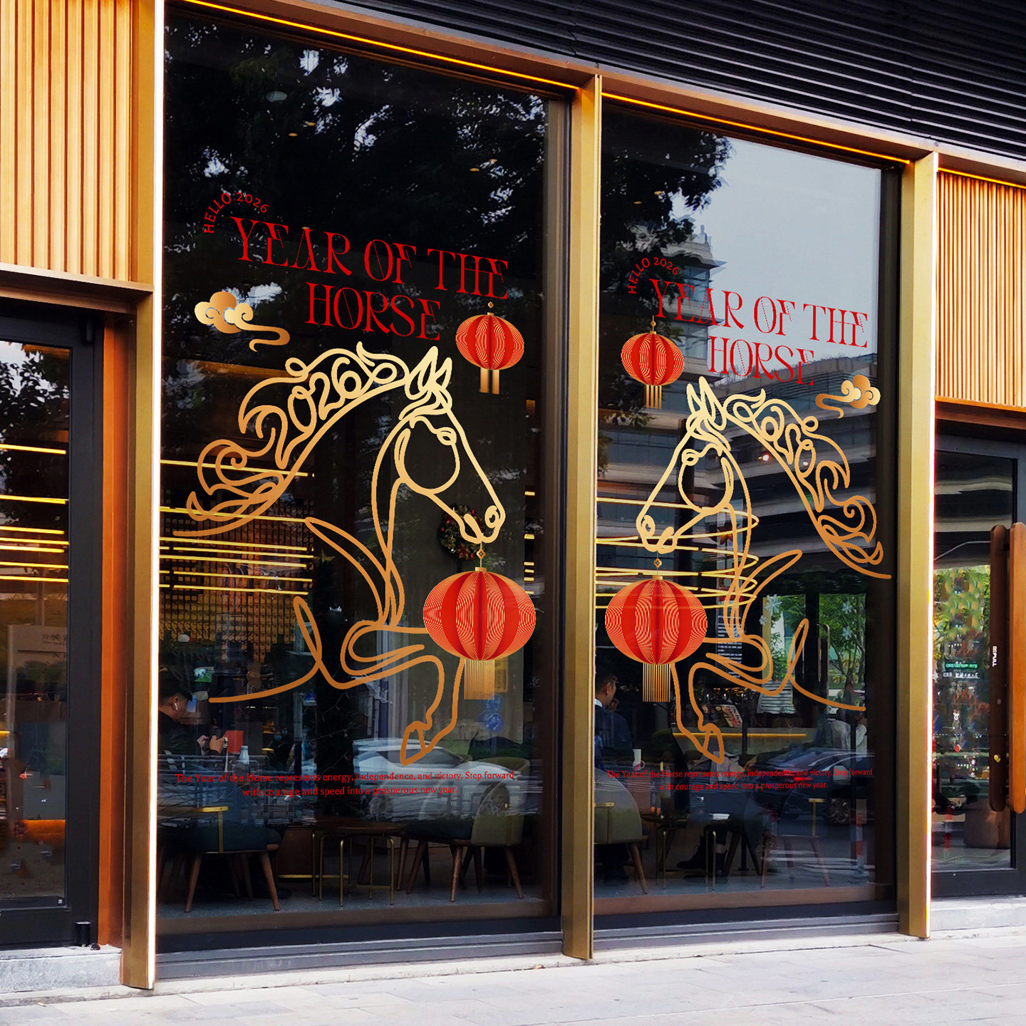 📚 马年简笔线条画门贴创意金色抽象艺术骏马海报高级感剪纸氛围布置