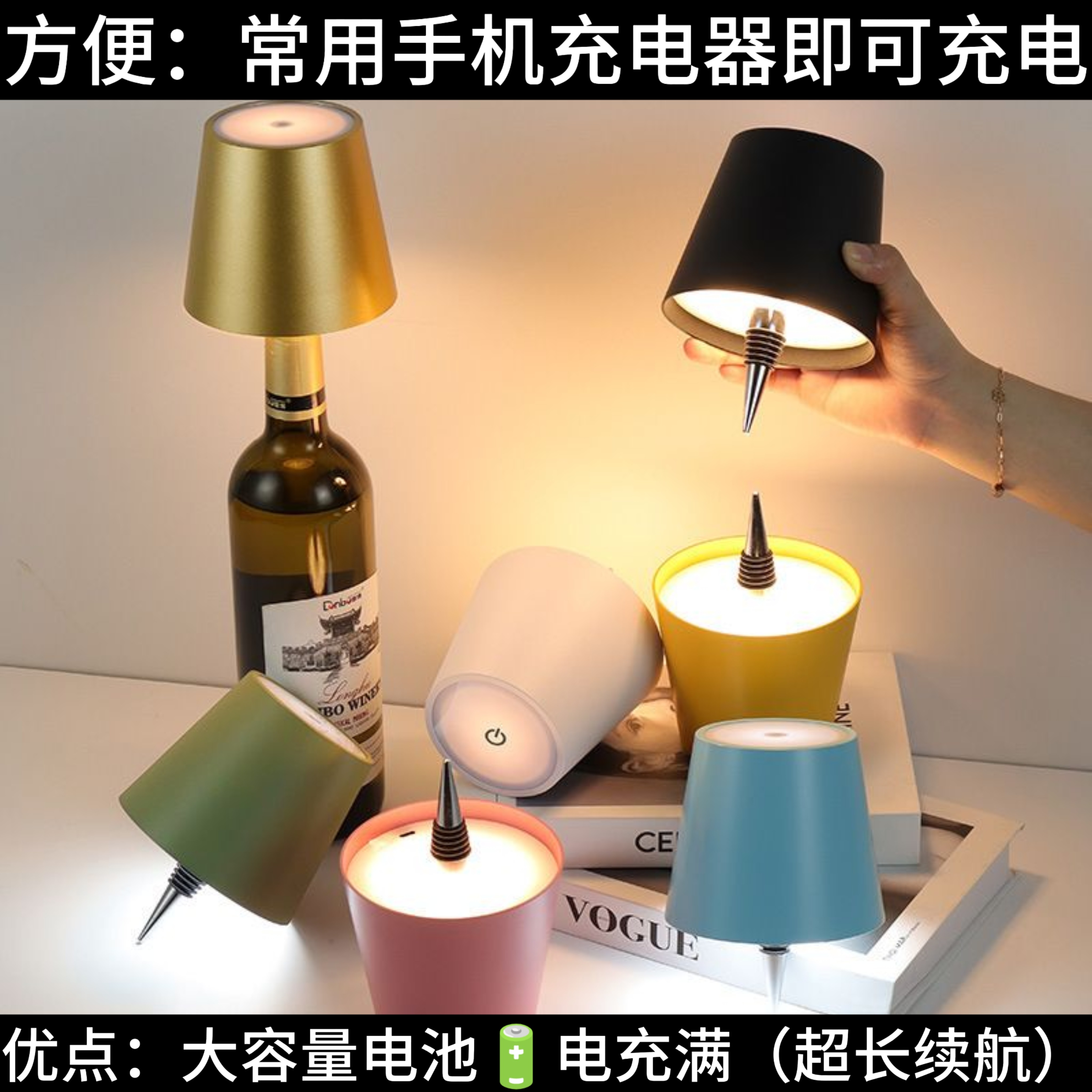 📚 欧式酒瓶小夜灯充电氛围创意装饰酒吧台灯餐厅烧烤户外露营气氛灯