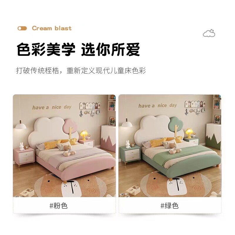 📚 一米二儿童床男孩女孩公主床1米2单人床现代简约1米35米童趣卡通