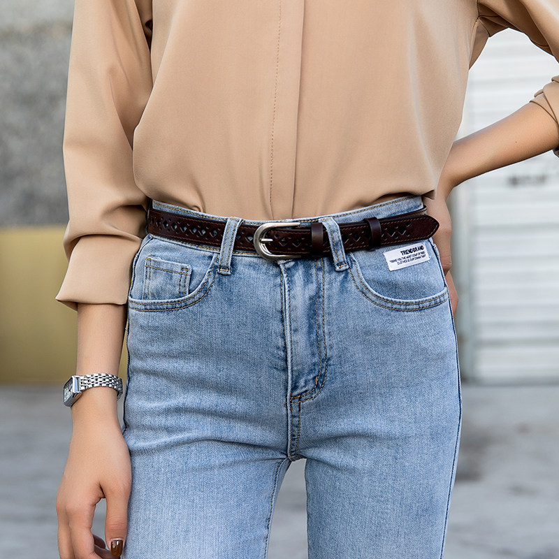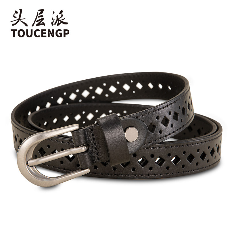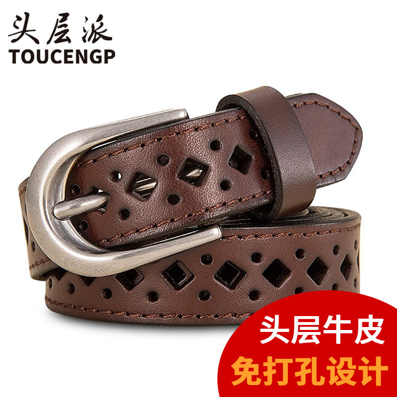 📚 皮带女真皮头层纯牛皮镂空免打孔夏季百搭牛仔裤细腰带配裙子装饰