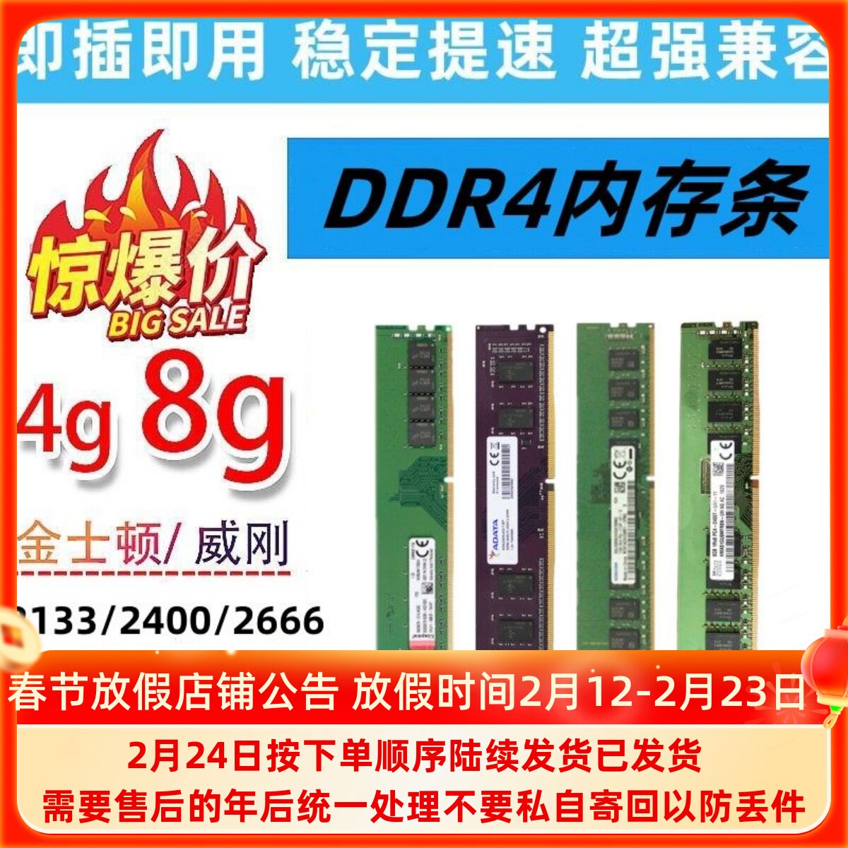 📚 DDR4品牌内存条4G 8G台式机2133四代2400二手电脑拆机2666通用1.2