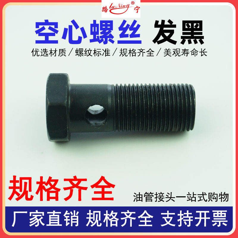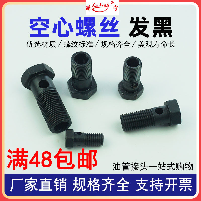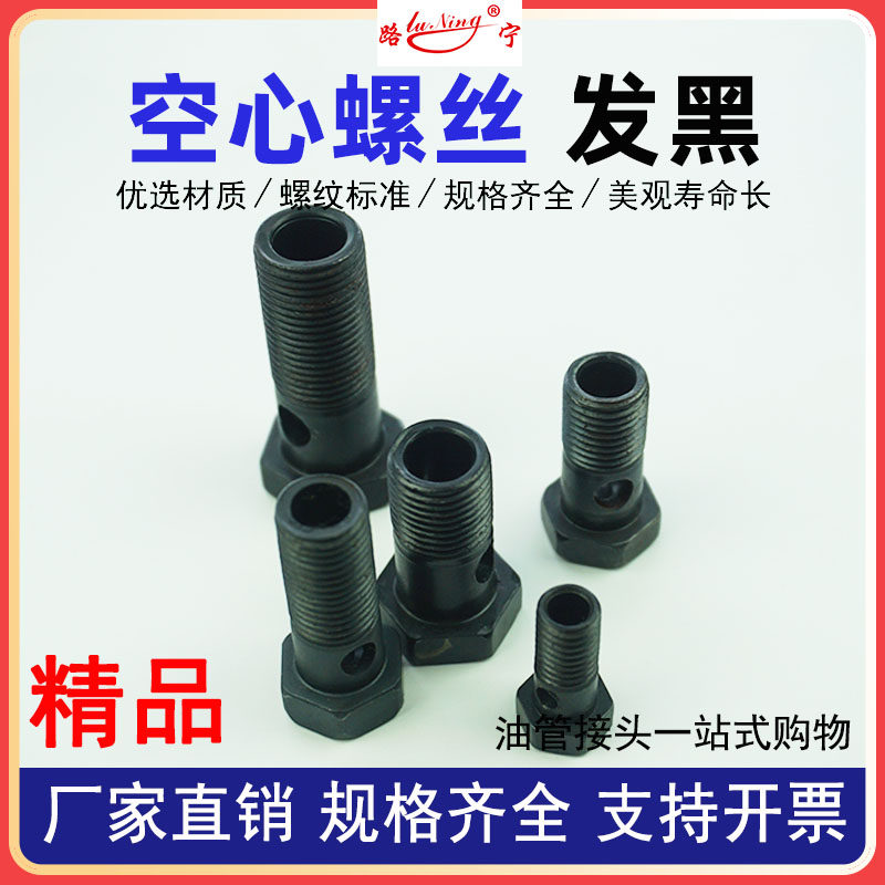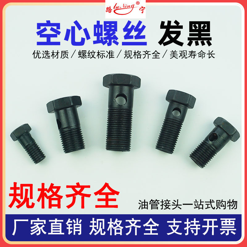 📚 单孔外六角空心螺丝发黑色柴油机回油管液压过油管铰接头螺栓两孔