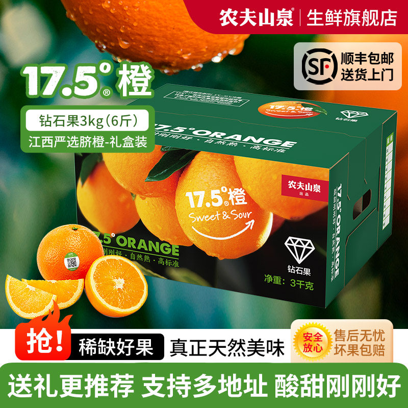 📚 农夫山泉17.5°橙子江西产地脐橙钻石3kg 当季新鲜自然熟水果礼盒