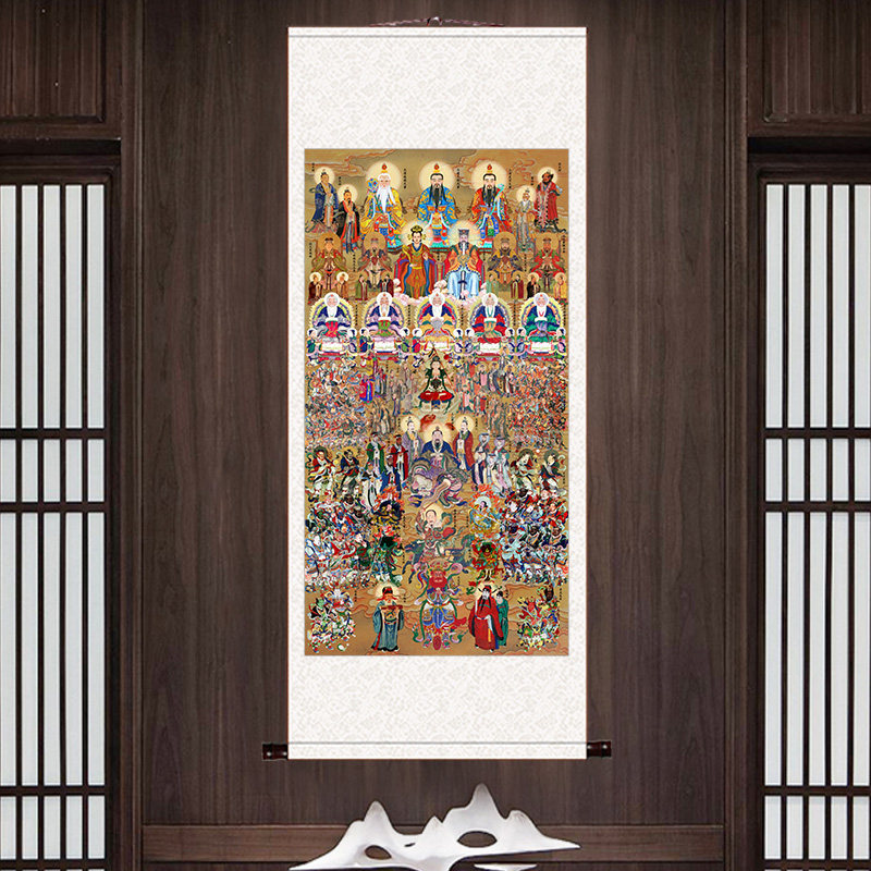 📚 全神挂画三清四御王母玉帝画像卷轴画供奉雷祖神仙装饰装裱画