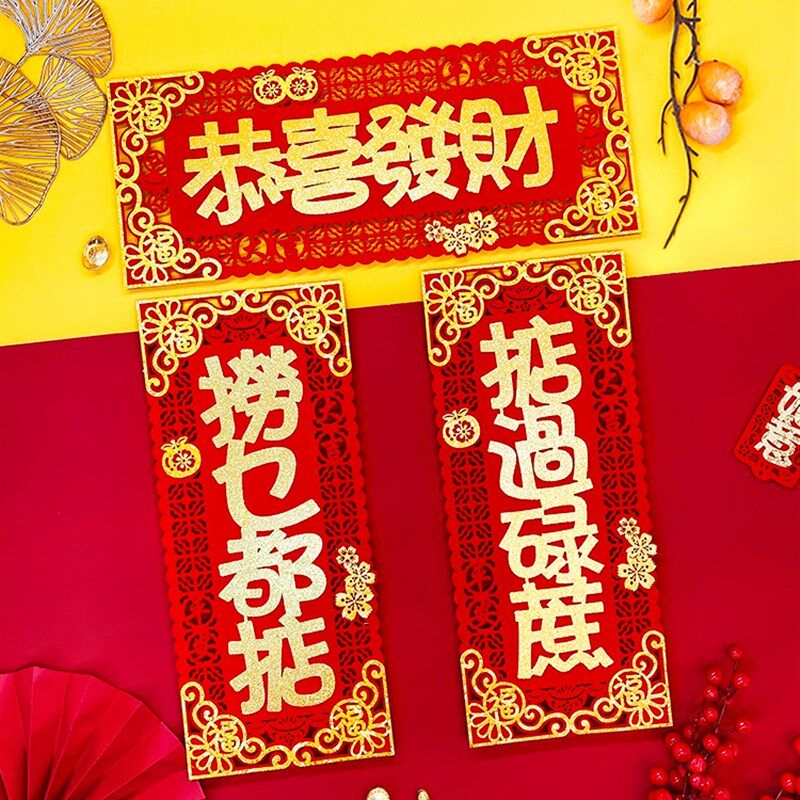 📚 粤语挥春小号四字绒布镂空2023兔年新款港版对联横批Y客厅装饰贴