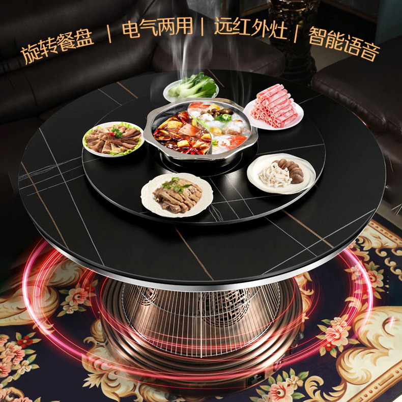 📚 气电两用电取暖桌天然气烤火桌多功能圆形岩板电暖餐桌燃气取暖炉