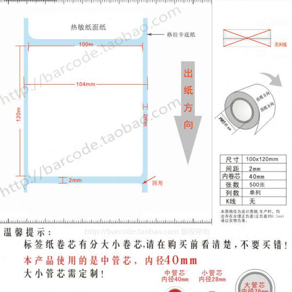 📚 热敏纸标签纸100x120mmx500张 空白热敏不干胶10x12cm 热敏条码纸