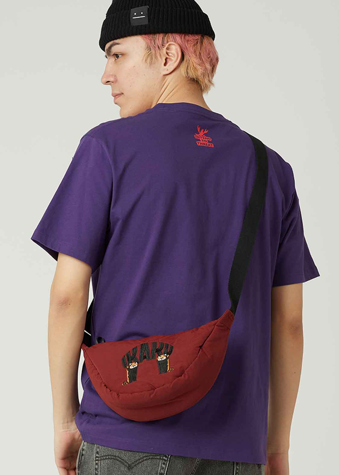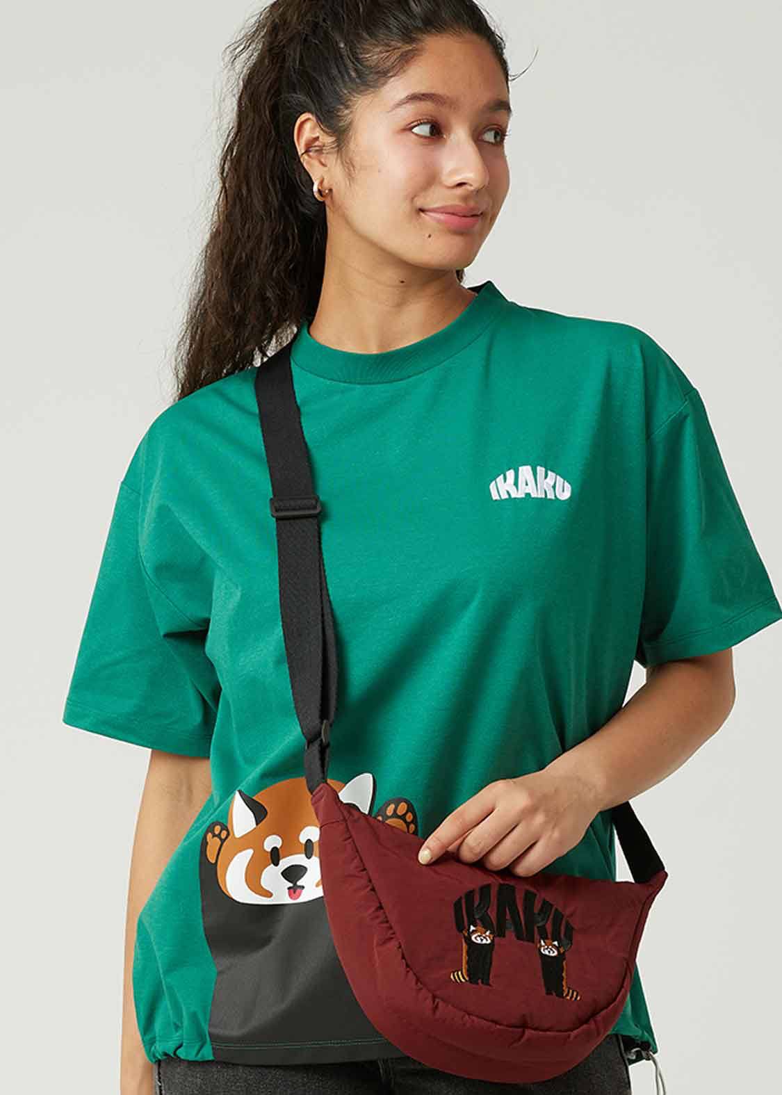 📚 不退换货 潮牌红牌G家合作ikaku小熊猫小浣熊刺绣图案多功能挎包