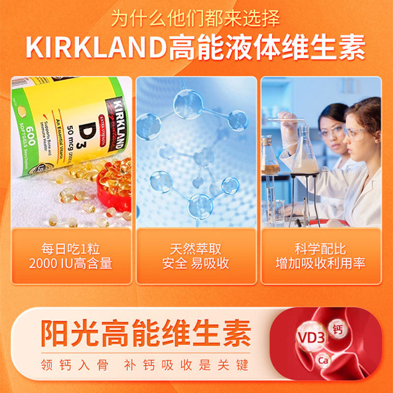 📚 【自营】Kirkland柯克兰进口维生素d3液体钙强健骨骼成人易吸收