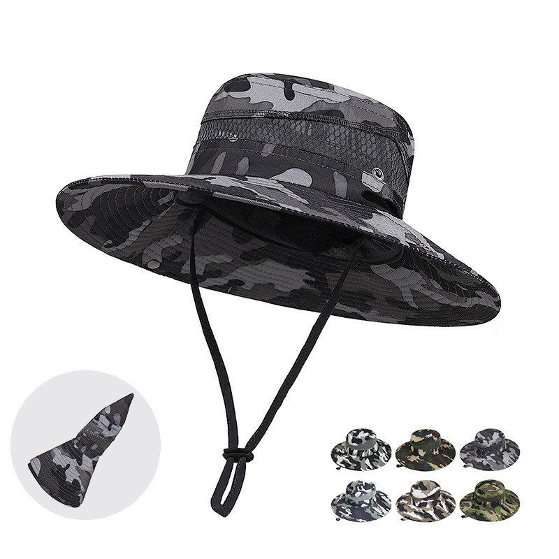 📚 迷彩渔夫帽男夏大帽檐防晒遮阳帽户外徒步旅游登山钓鱼帽子太阳帽