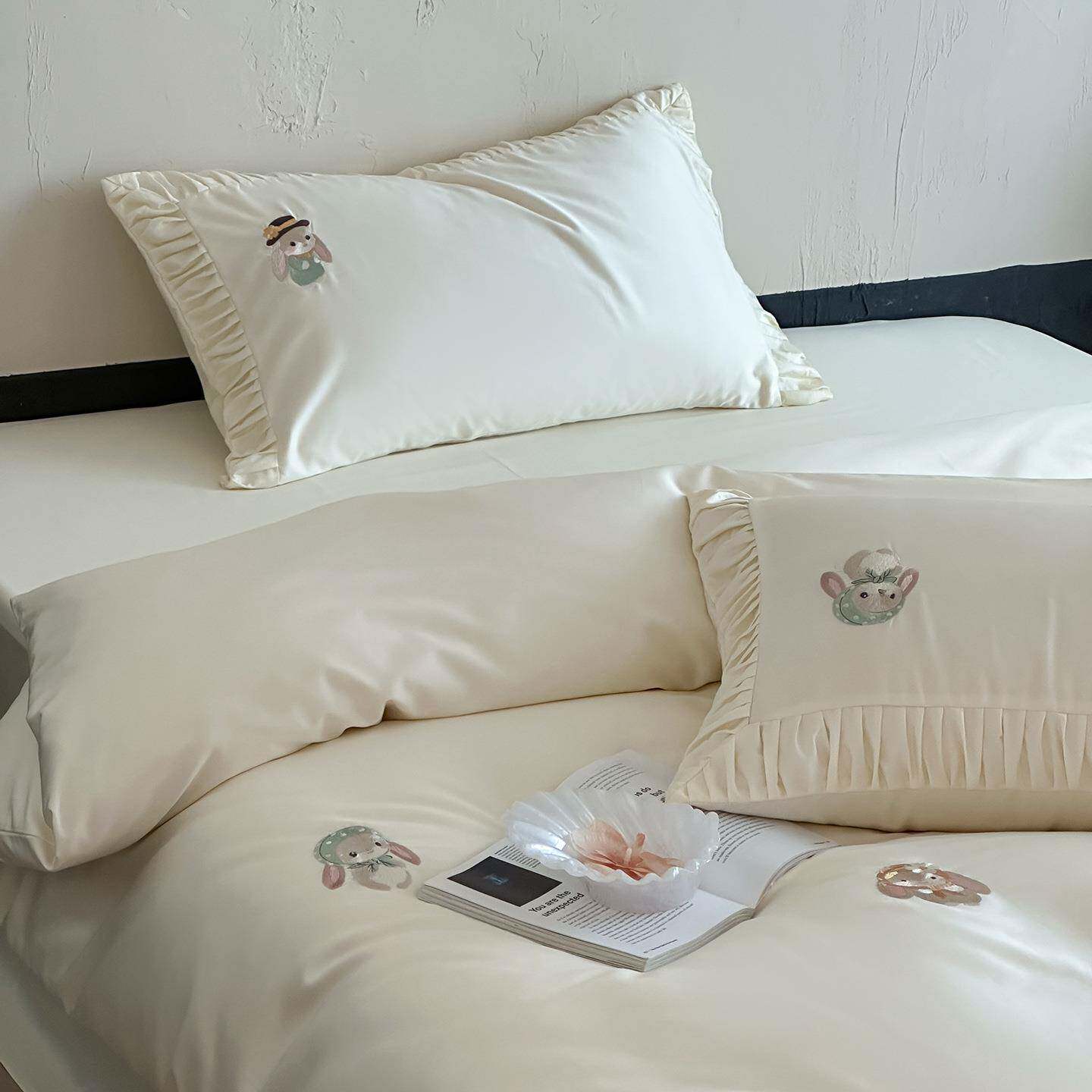 📚 2025新款50S长绒棉贡缎刺绣四件套-尼可系列 1.2m床单款三件套 尼