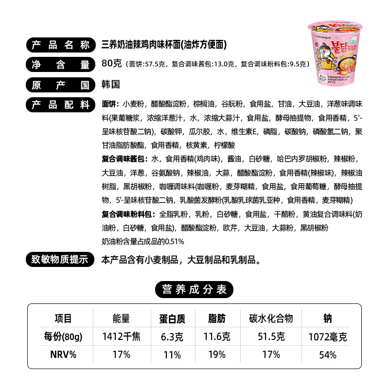 📚 韩国进口Samyang/三养奶油火鸡面80g杯面夜宵方便面拉面泡面速食
