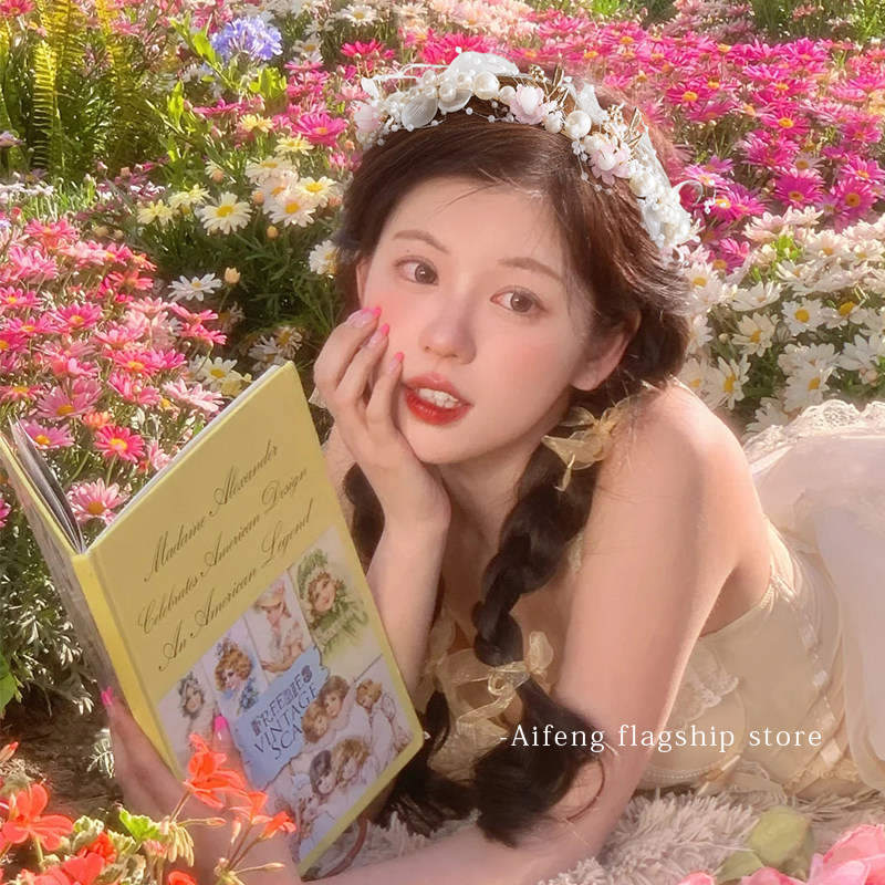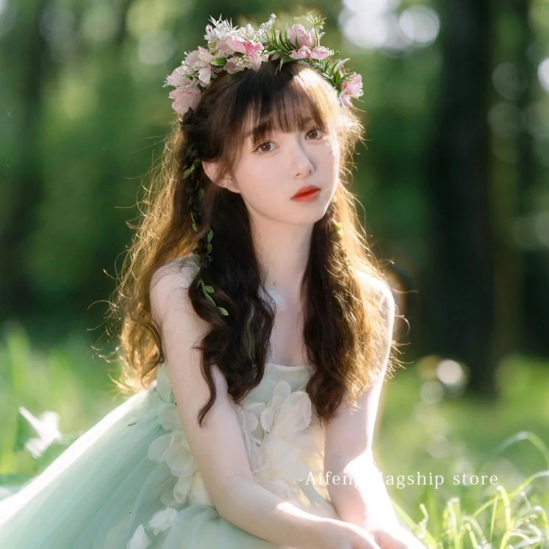 📚 超仙花环头饰森系少女成人仿真花朵氛围感编发箍演出写真拍照发饰