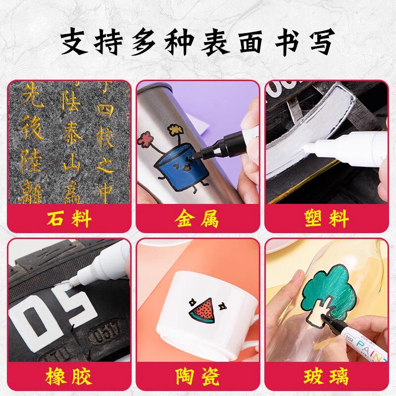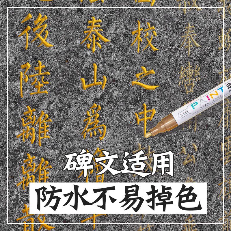 📚 【多仓速发】得力碑文补漆笔工业不掉色清明节防水描碑油漆笔防晒油漆笔火漆上色签名笔石金红黑描字红色金色