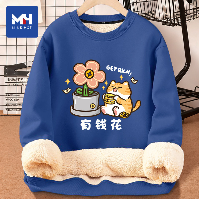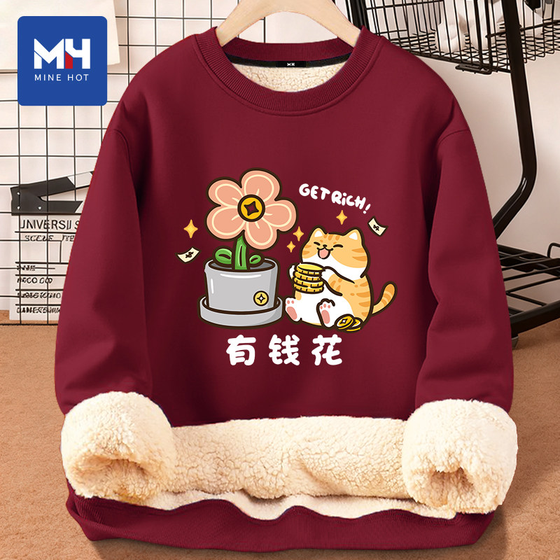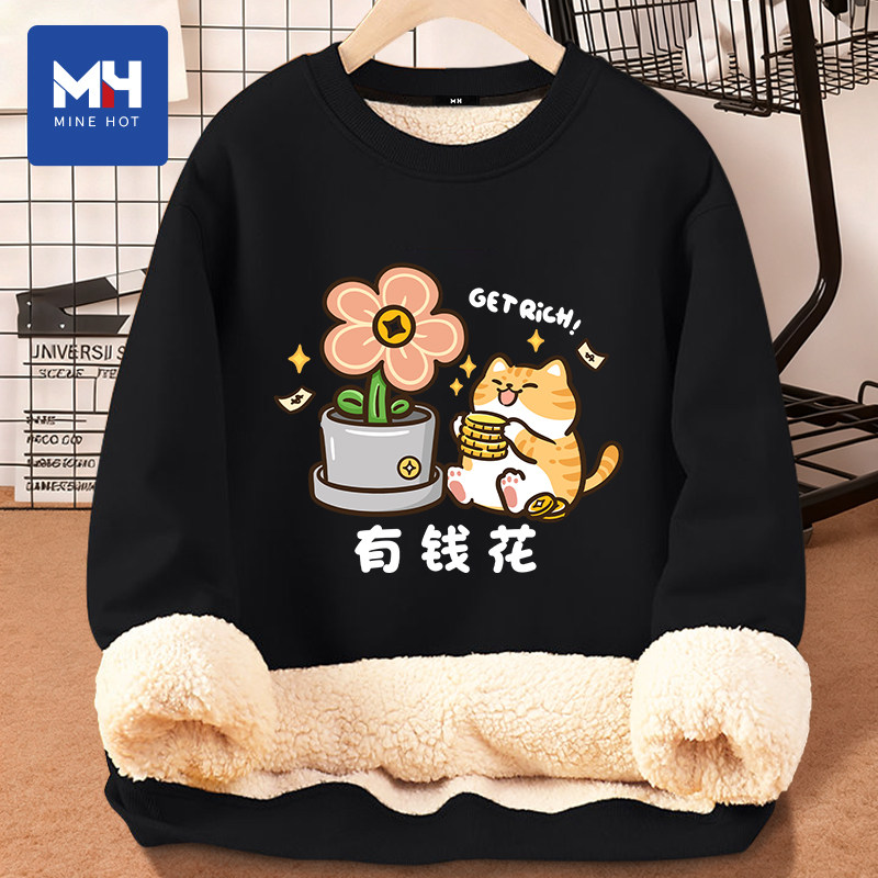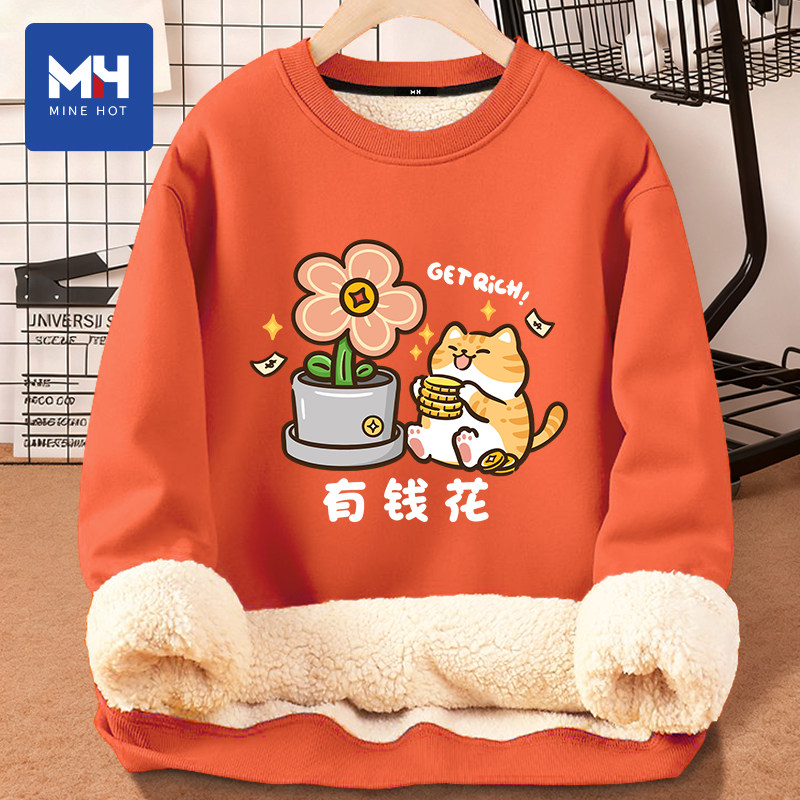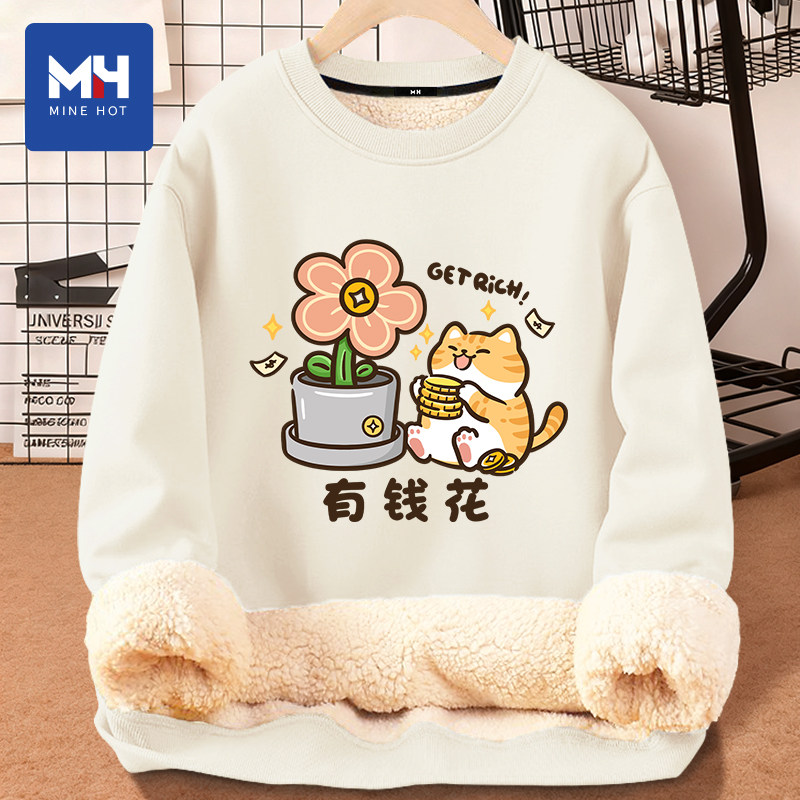 📚 唐狮集团MH有钱花圆领卫衣男女款2026冬季休闲宽松保暖情侣装上衣