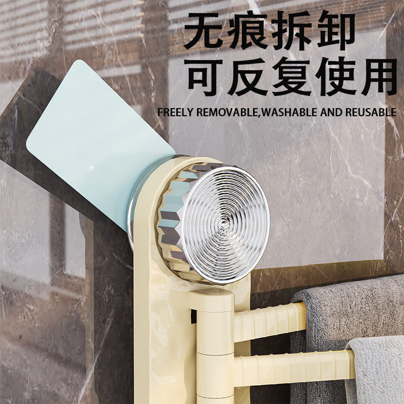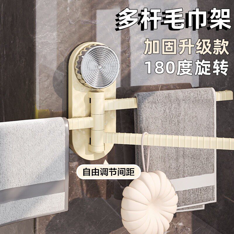 📚 吸盘毛巾架卫生间免打孔三杆毛巾置物架卫生间衣物架挂毛巾毛布架